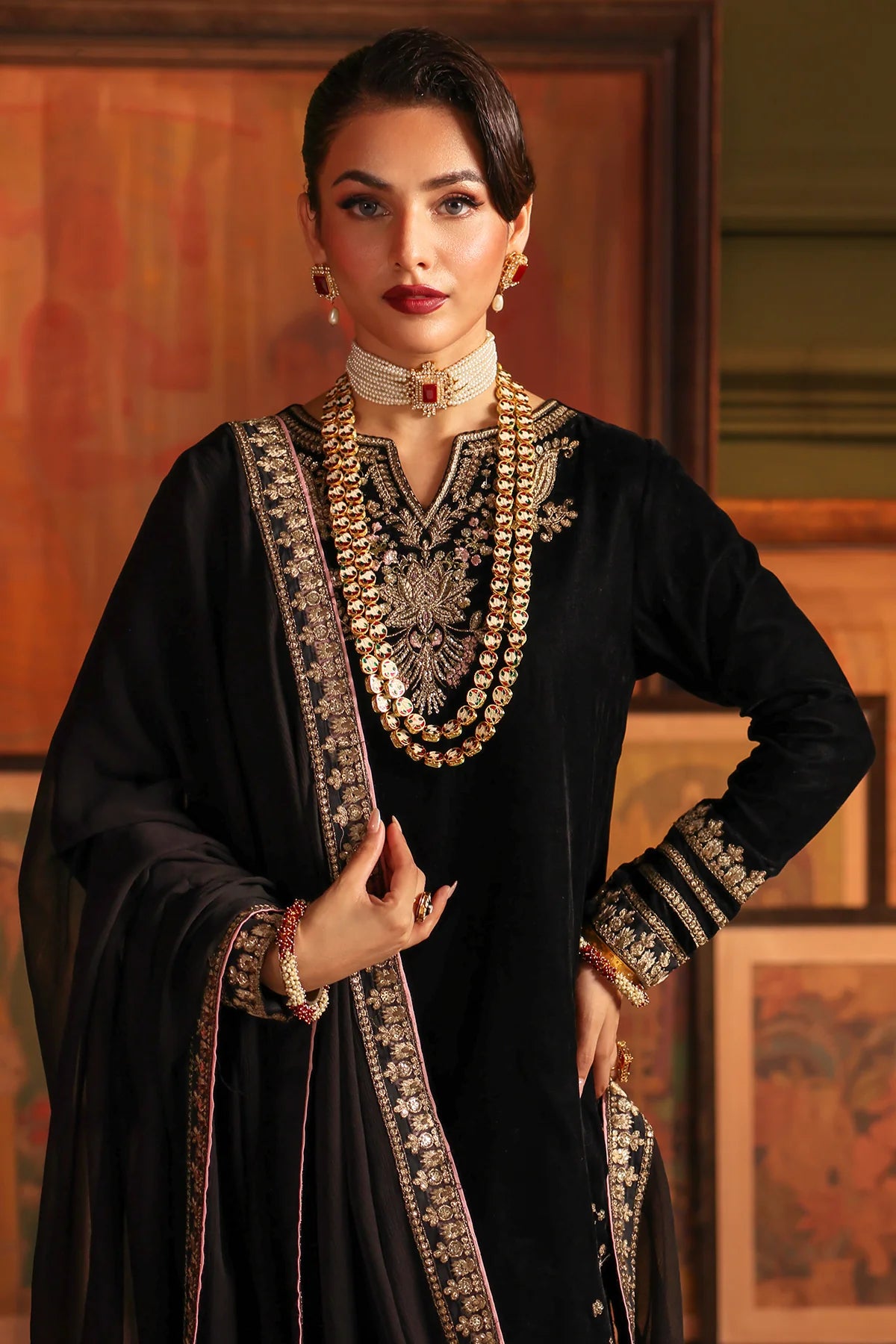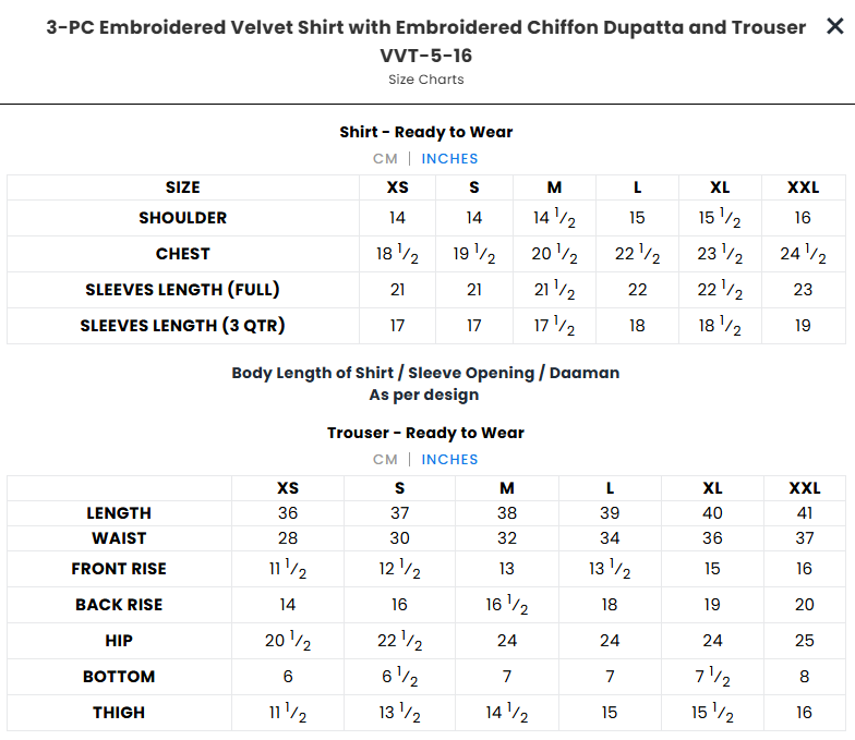 3-PC Embroidered Velvet Shirt with Embroidered Chiffon Dupatta and Trouser VVT-5-16 (PRE-ORDER)