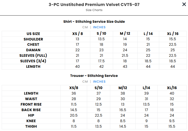 - Collections: Best Sellers - Charizma - Formal Wear - Luxury Pret - New Arrivals - Pakistani Velvet Suits Collection - Party Wear - Pre-Orders - Ready To Wear - Stitched On Order - Wedding and Bridesmaids Dresses - Winter Collection