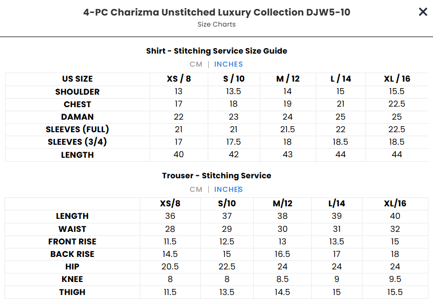 - Collections: Charizma - Formal Wear - Luxury Pret - New Arrivals - Party Wear - Pishwas - Pre-Orders - Ready To Wear - Stitched On Order - Unstitched Suits Collection - Wedding and Bridesmaids Dresses