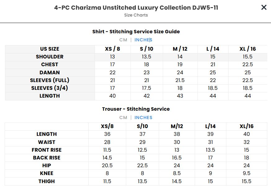 - Collections: Charizma - Formal Wear - Luxury Pret - New Arrivals - Party Wear - Pishwas - Pre-Orders - Ready To Wear - Stitched On Order - Unstitched Suits Collection - Wedding and Bridesmaids Dresses