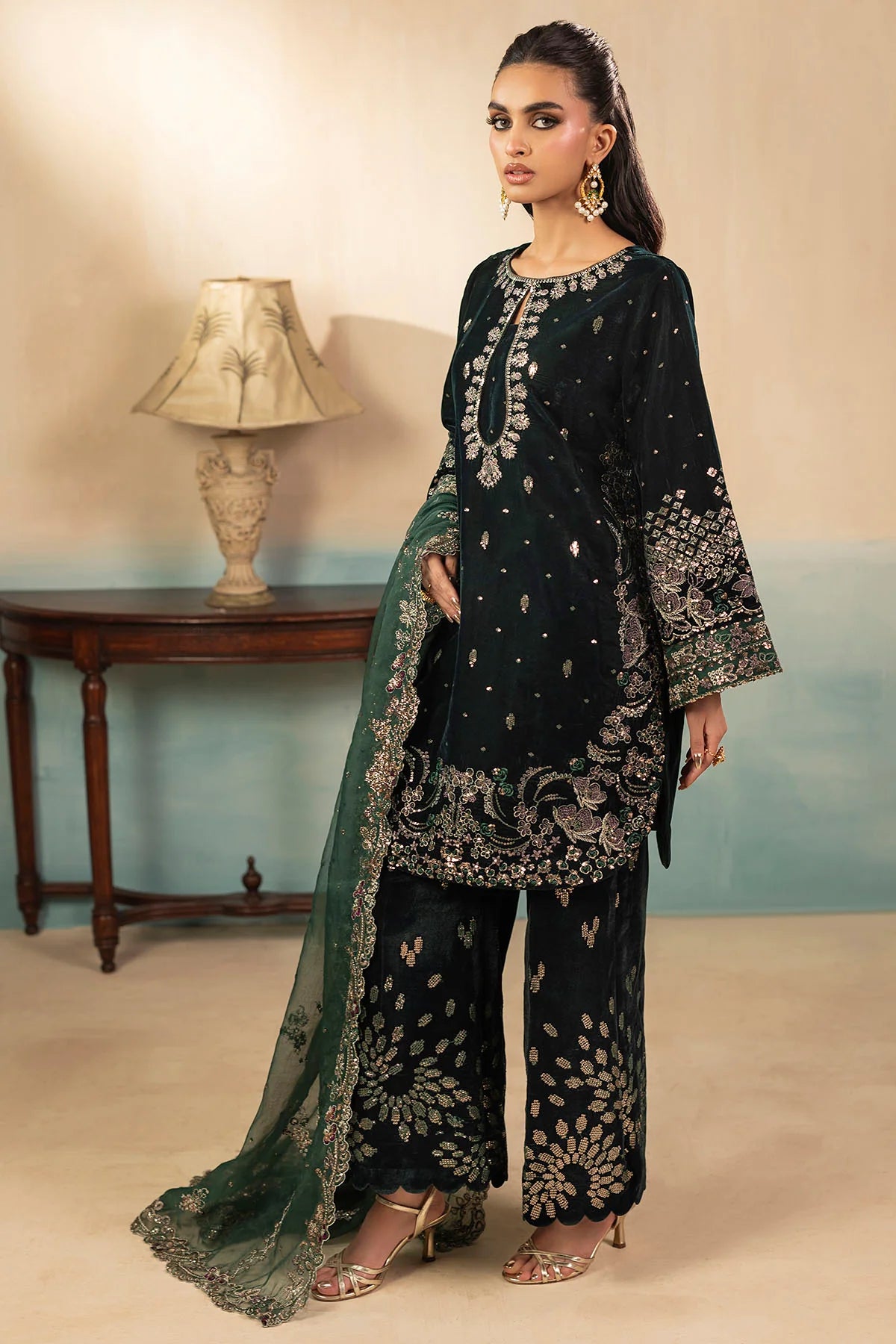 5666-AELLA EMBROIDERED VELVET UNSTITCHED (PRE-ORDER)