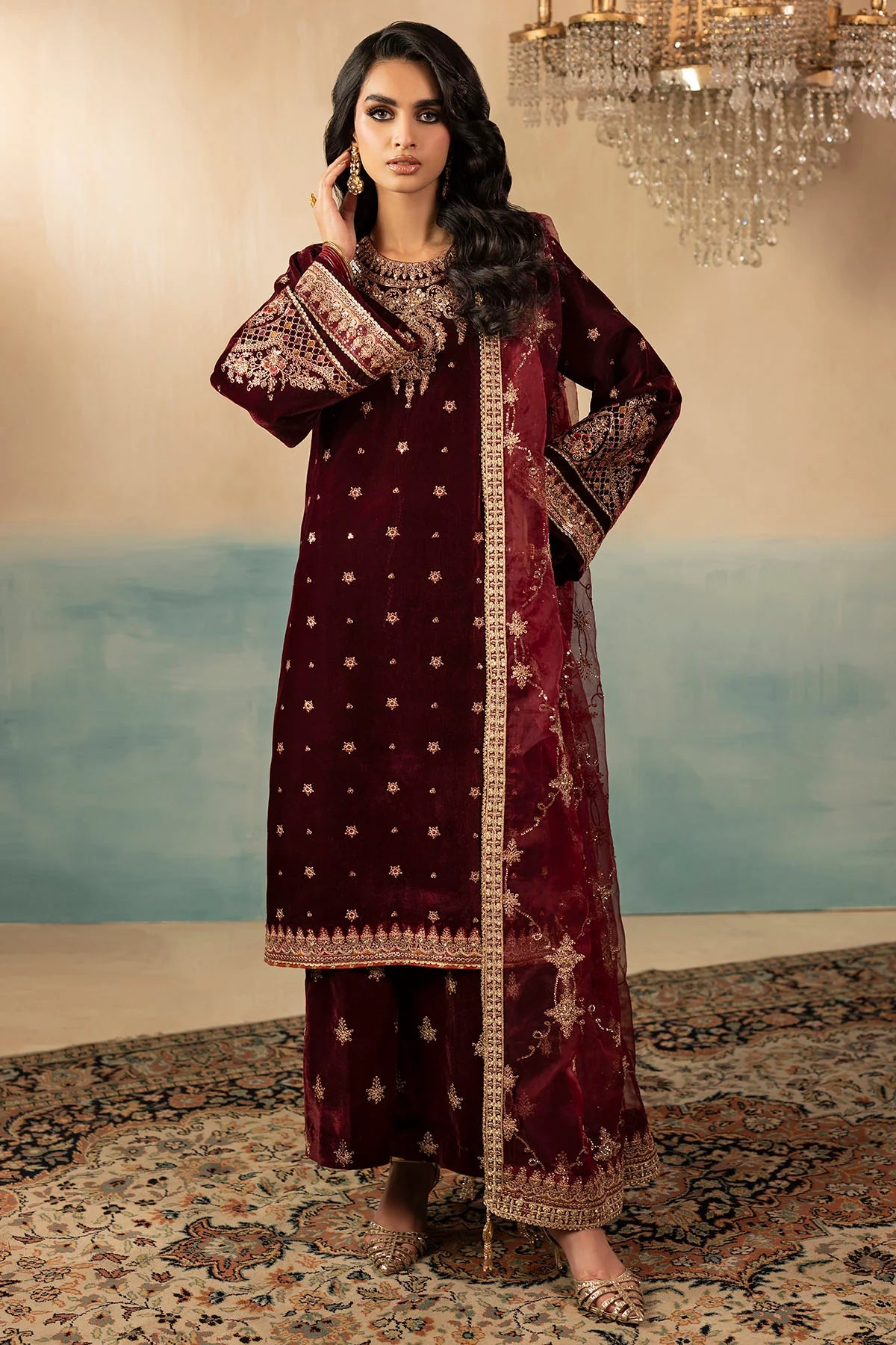 5667-SKY EMBROIDERED VELVET UNSTITCHED (PRE-ORDER)