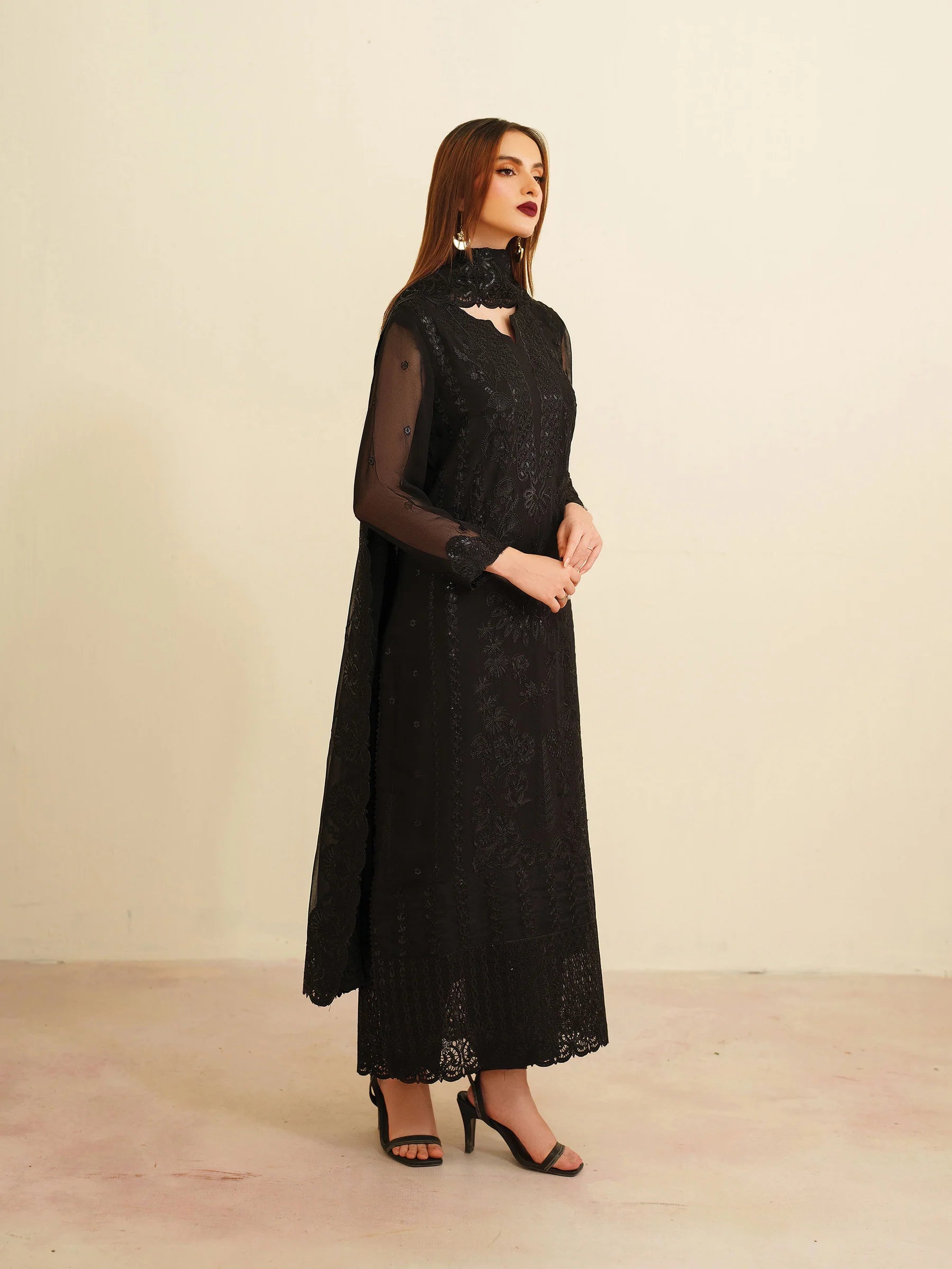 * Sleeveless Dresses: By default, all sleeveless dresses are stitched with sleeves unless the client specifically requests sleeveless attire.