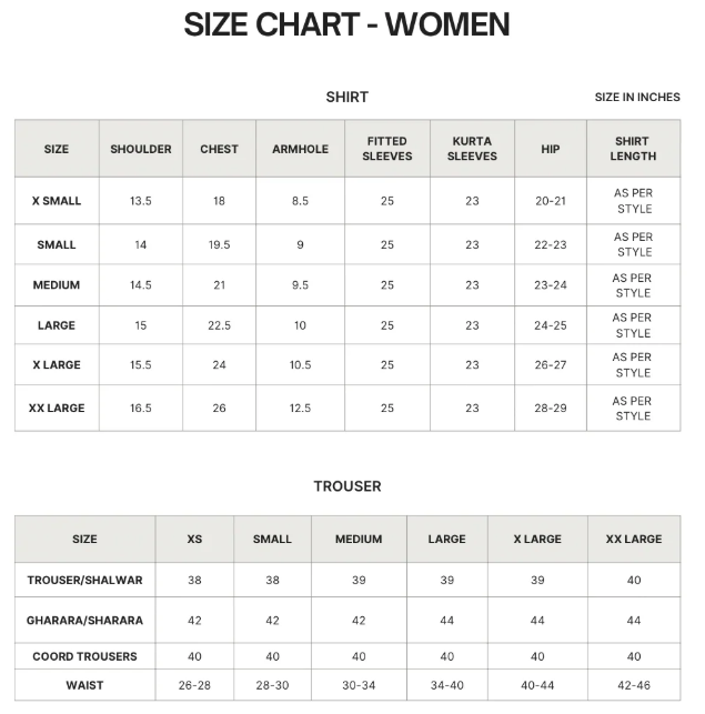 * Always check the Brand size guide in image slideshow of each item as every ready to wear item has its own size guide to be followed.