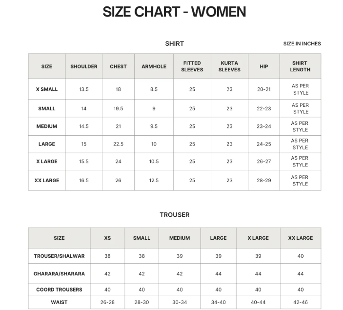 * Always check the Brand size guide in image slideshow of each item as every ready to wear item has its own size guide to be followed.
