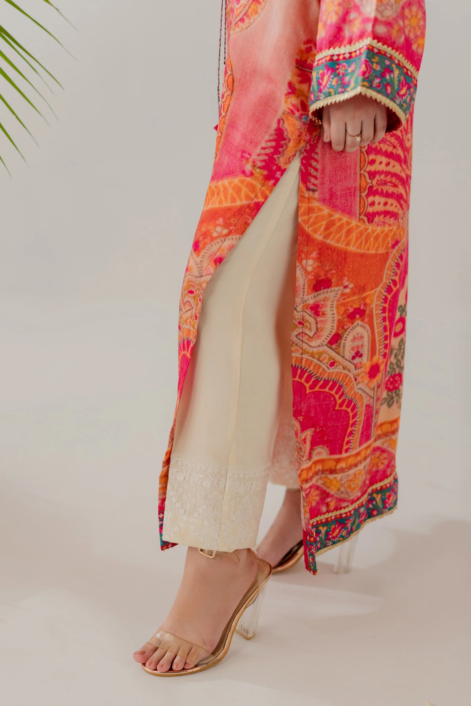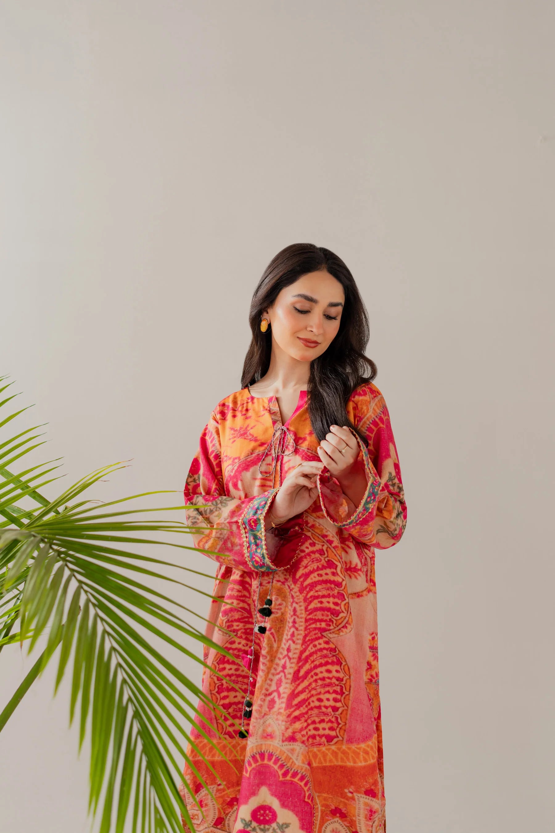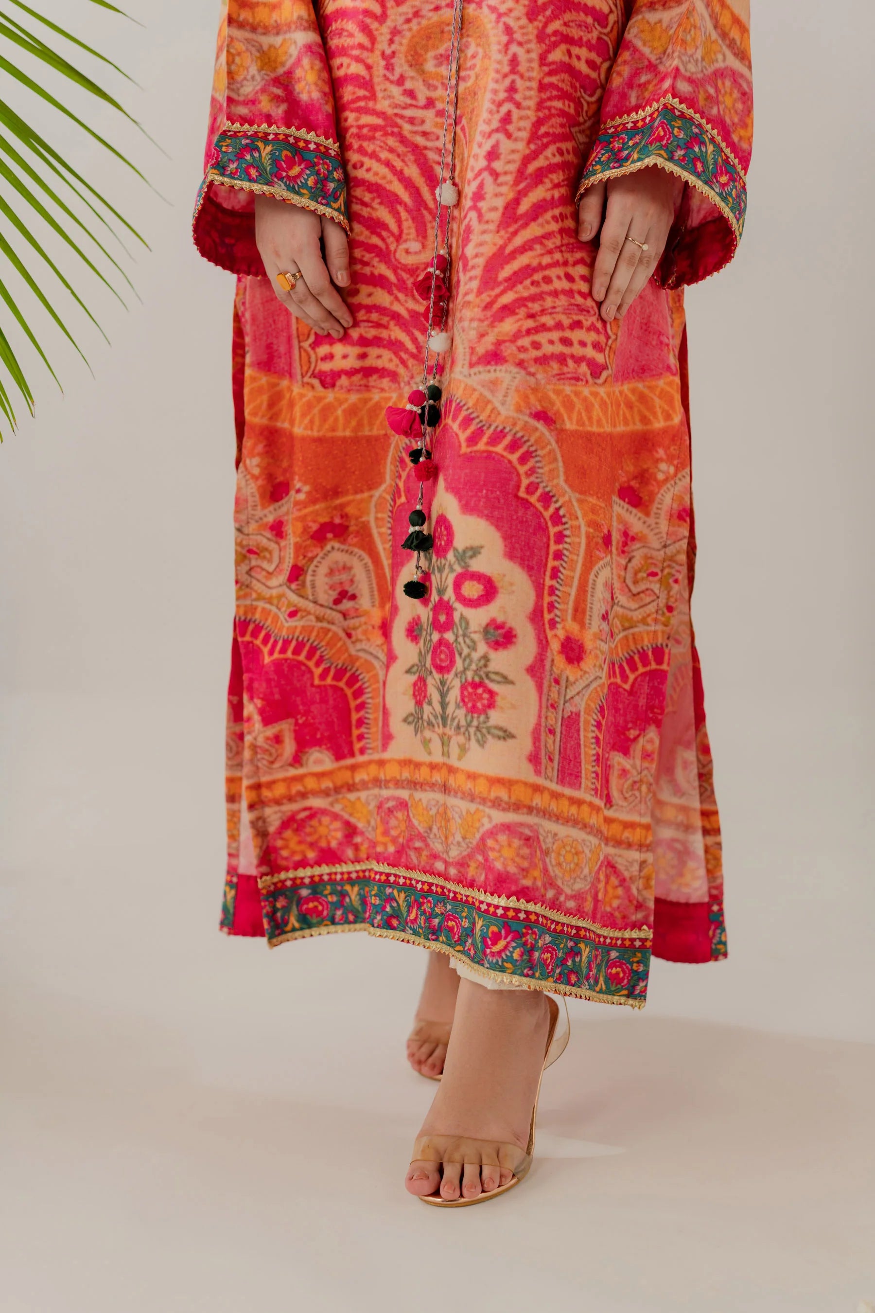 Shirt: Printed viscose embellished with a tassel and gota (length 50 inches),