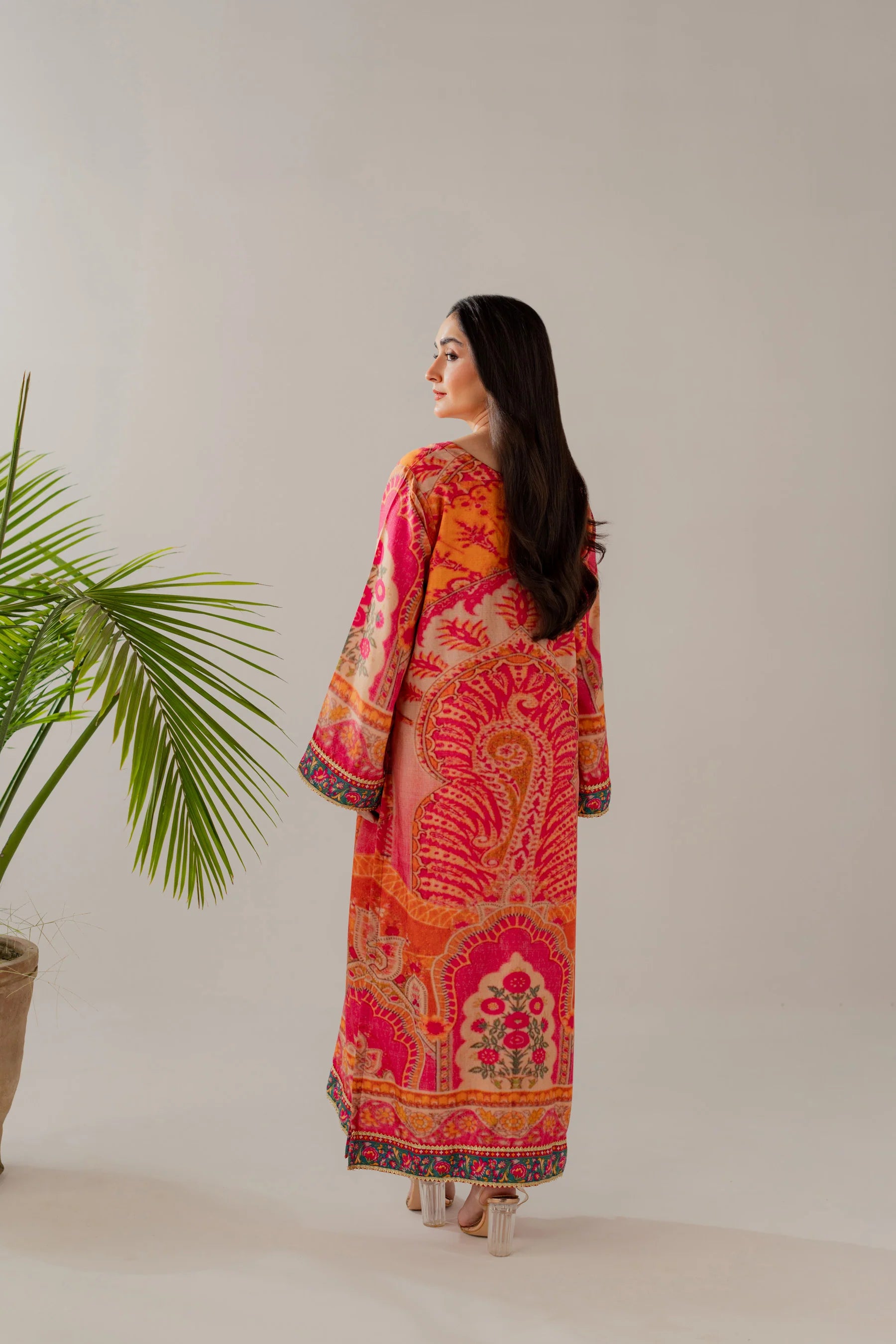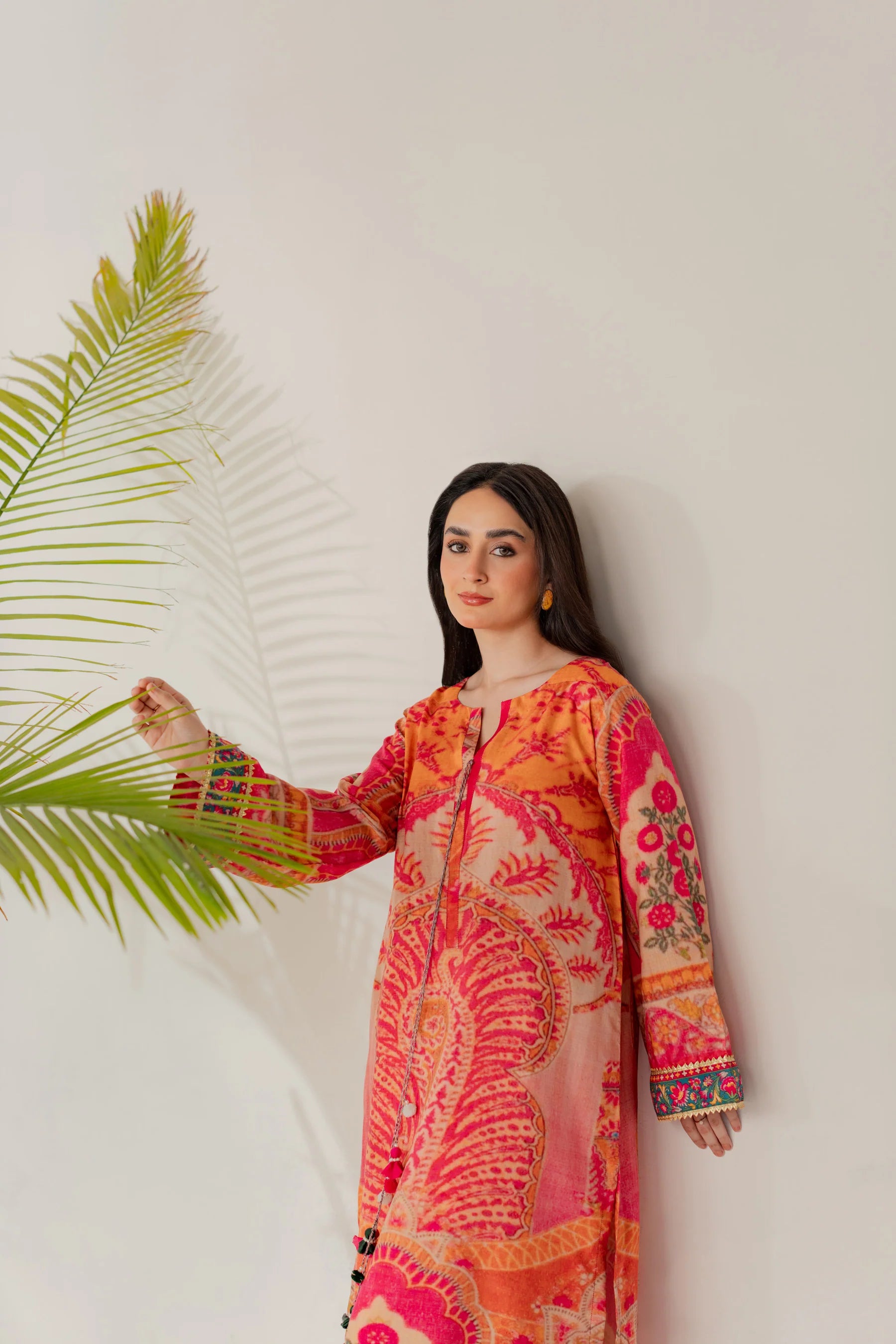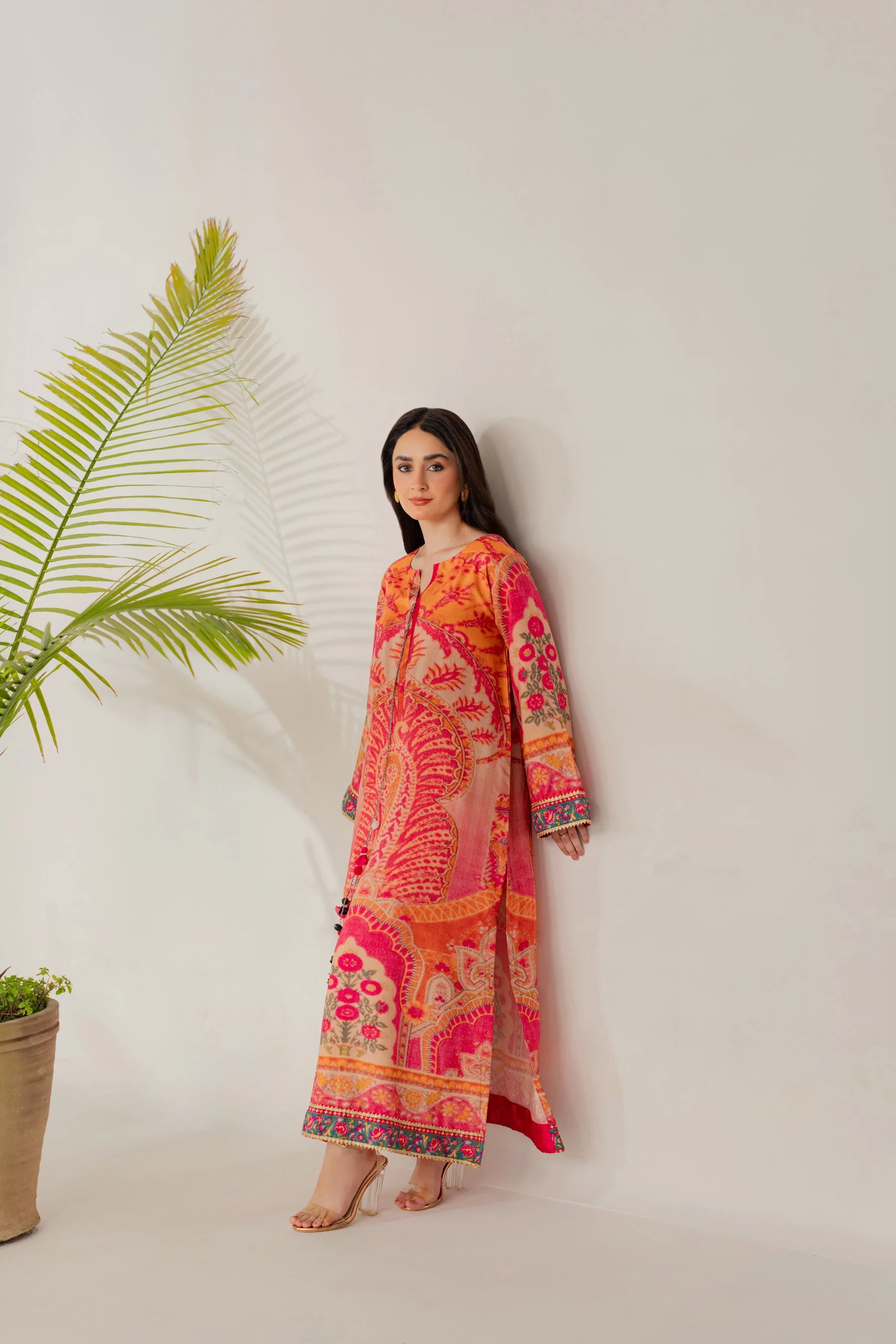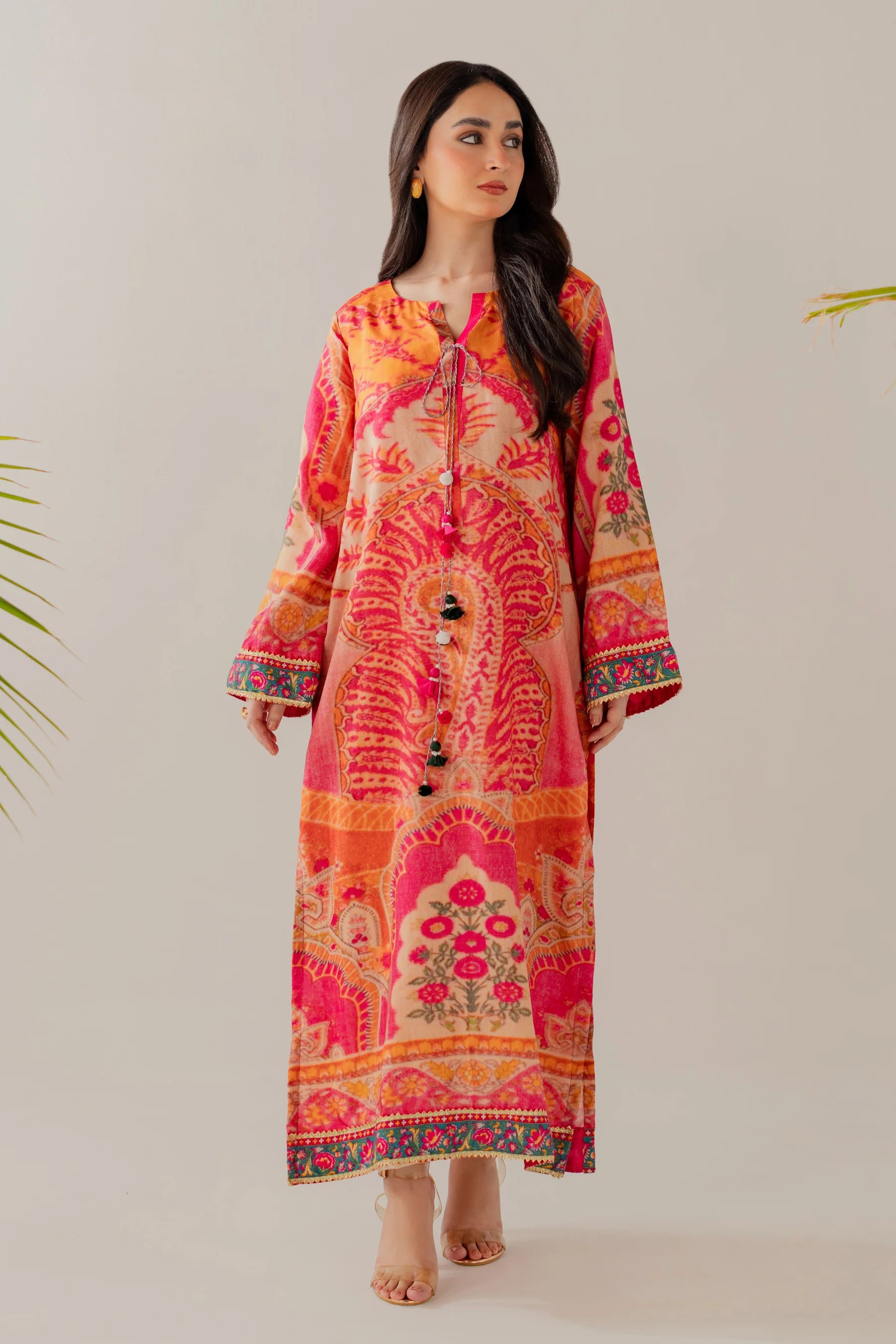 Shirt: Printed viscose embellished with a tassel and gota (length 50 inches),