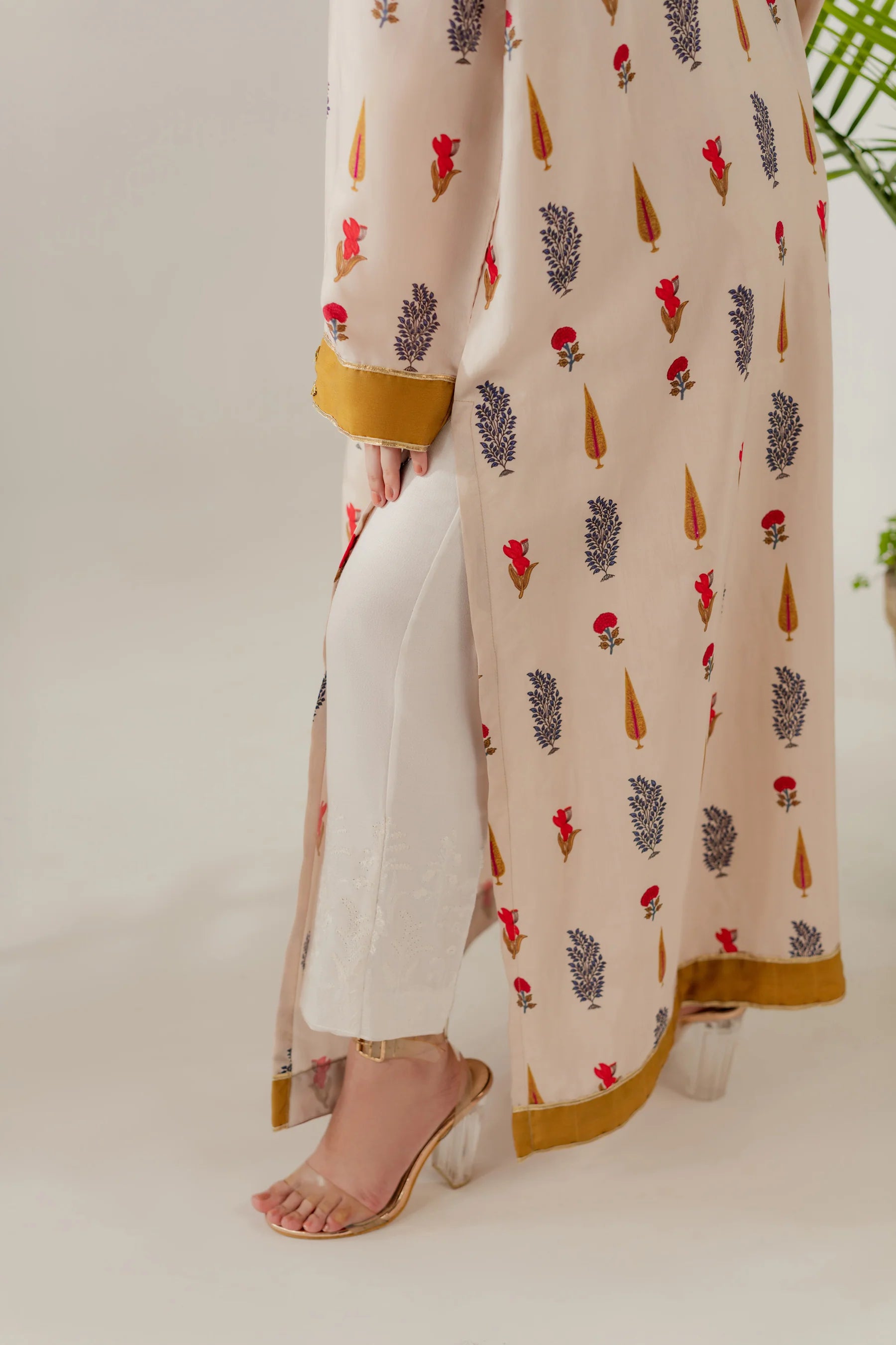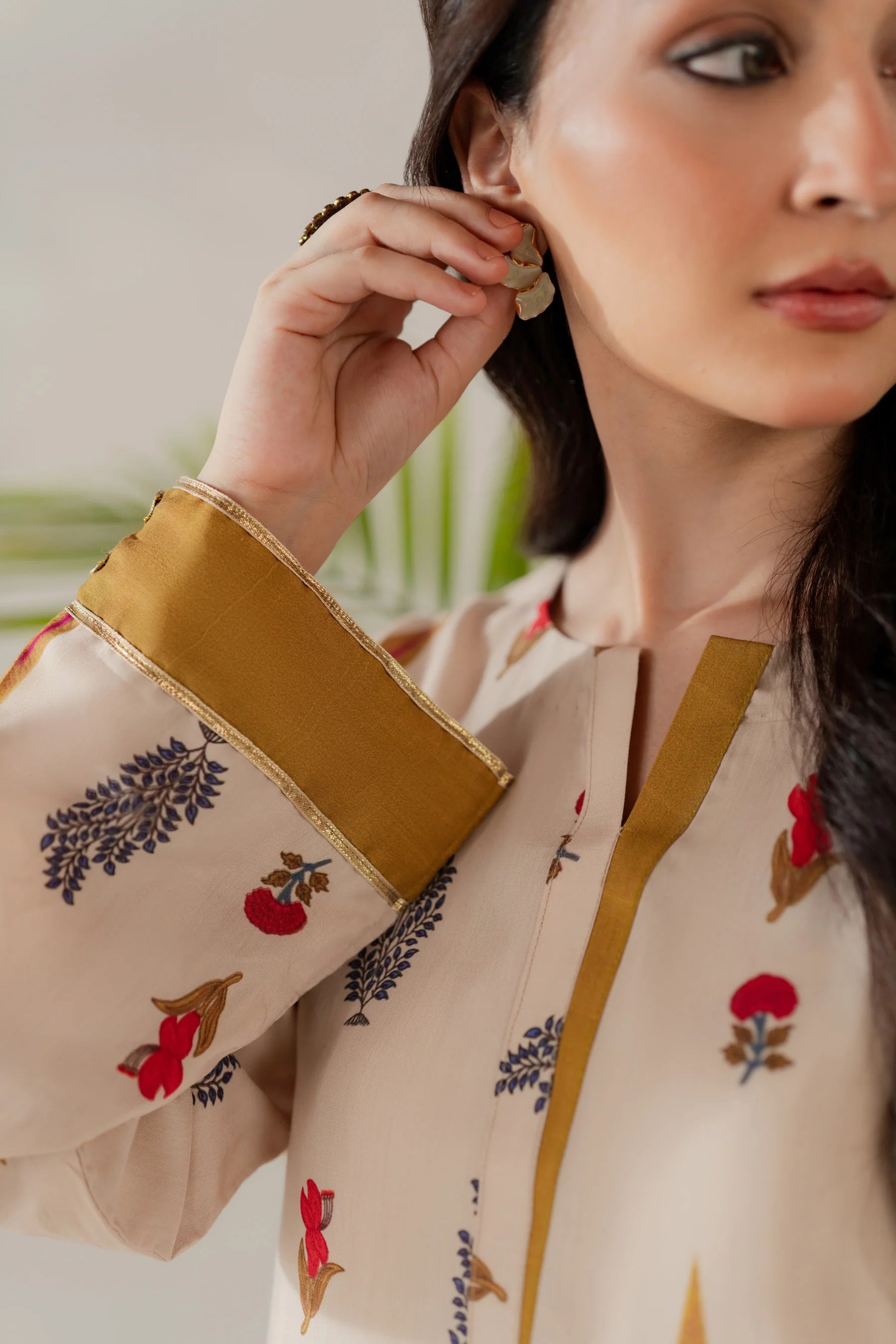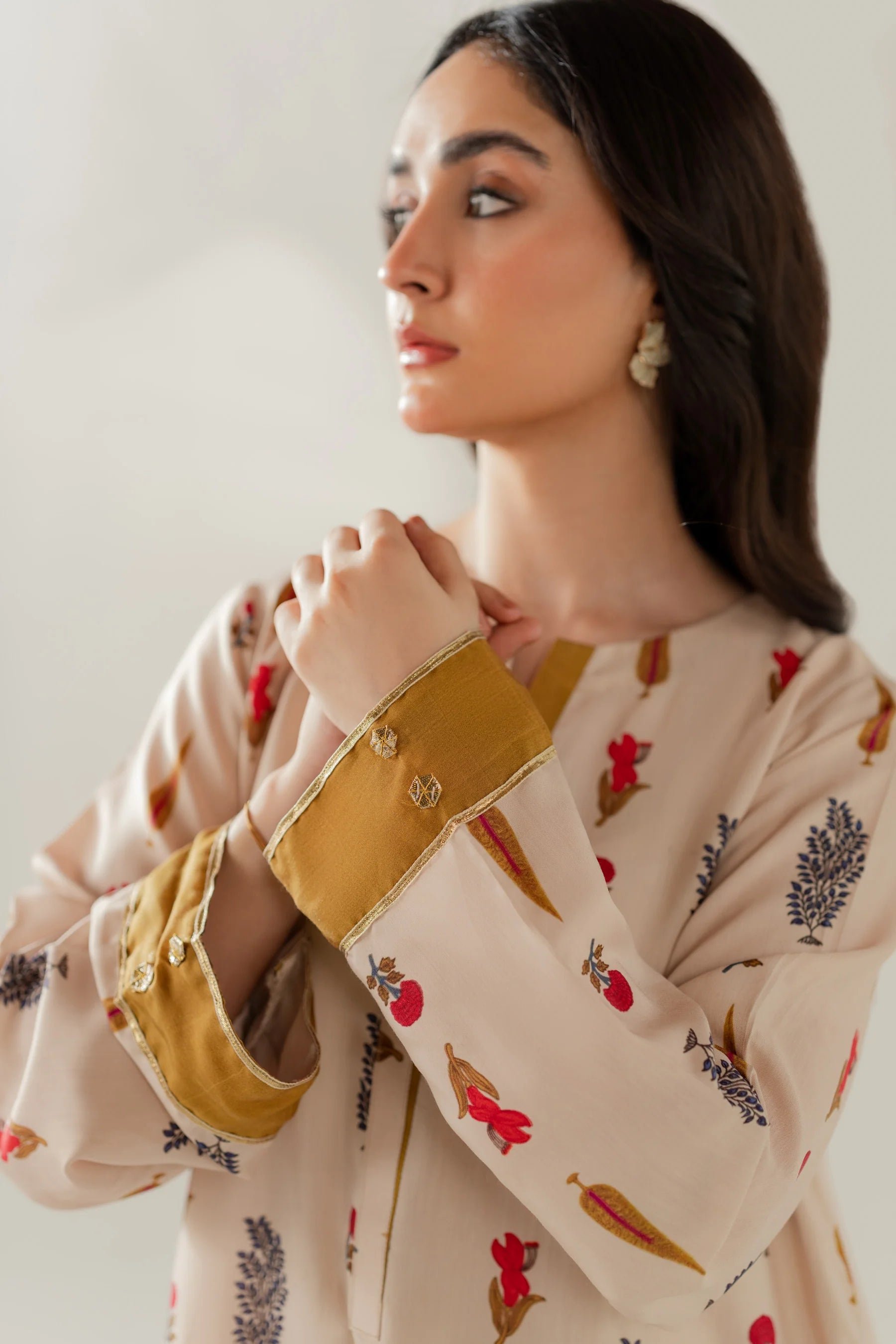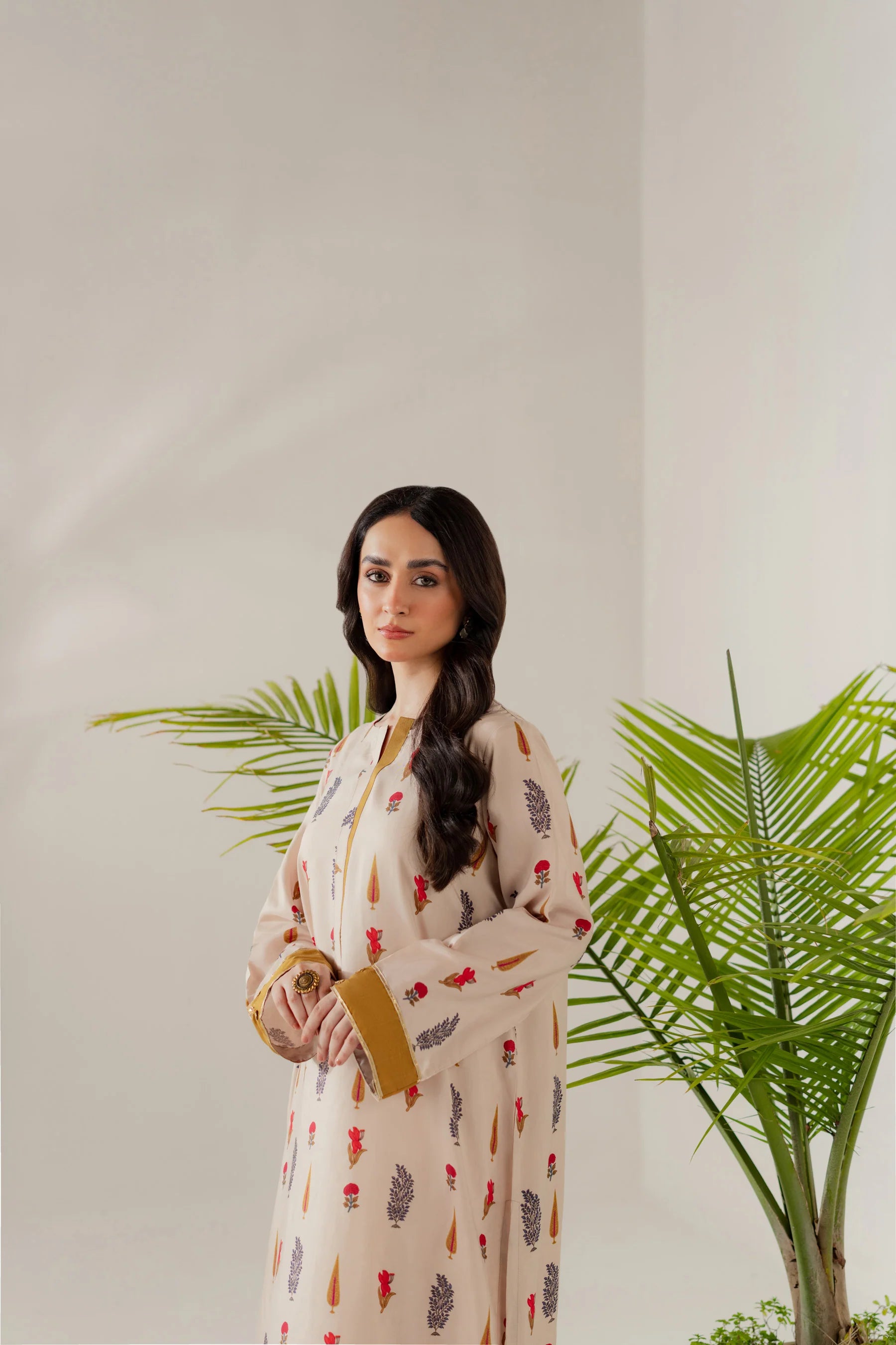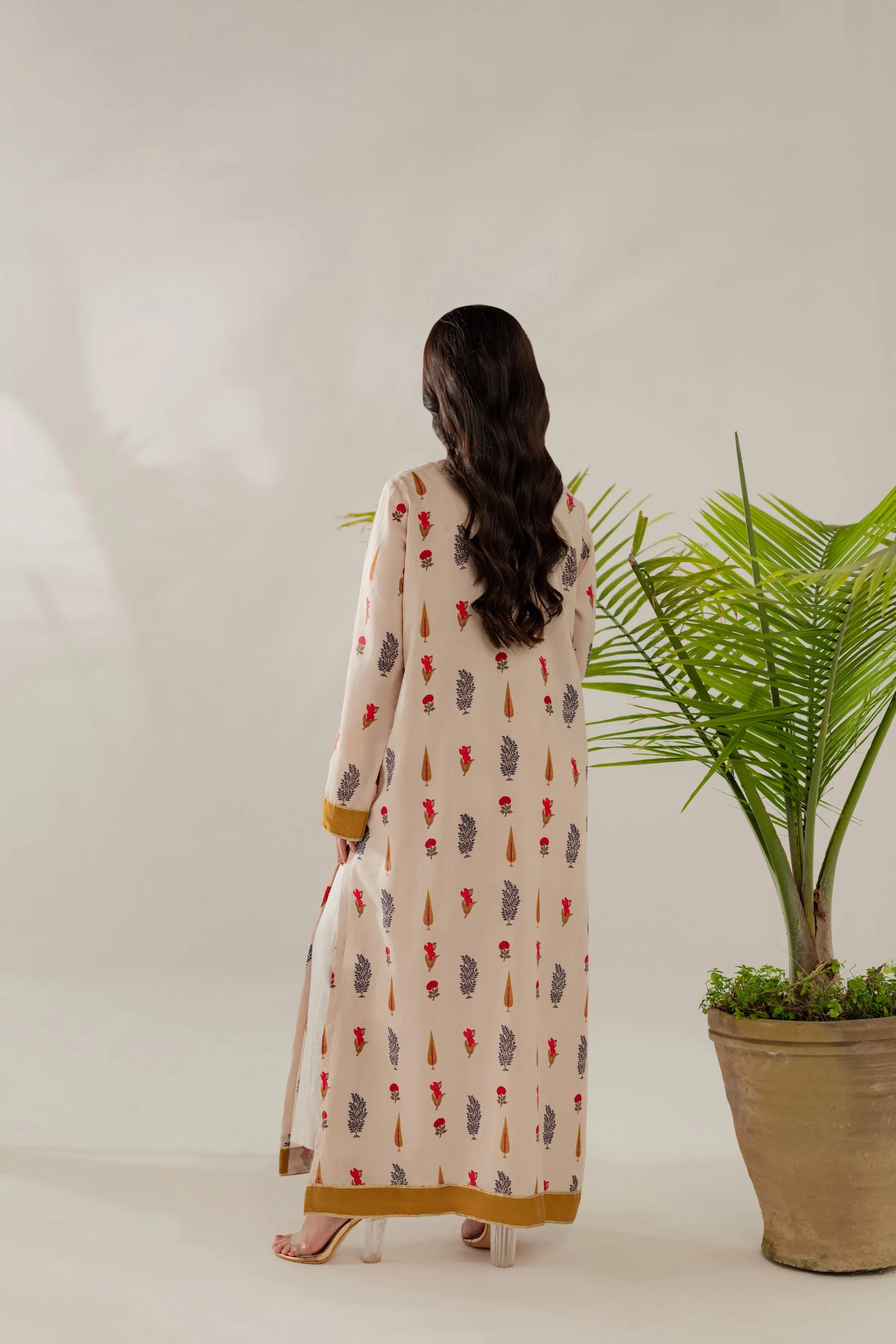 Shirt: Printed viscose with gota details (length 50 inches)