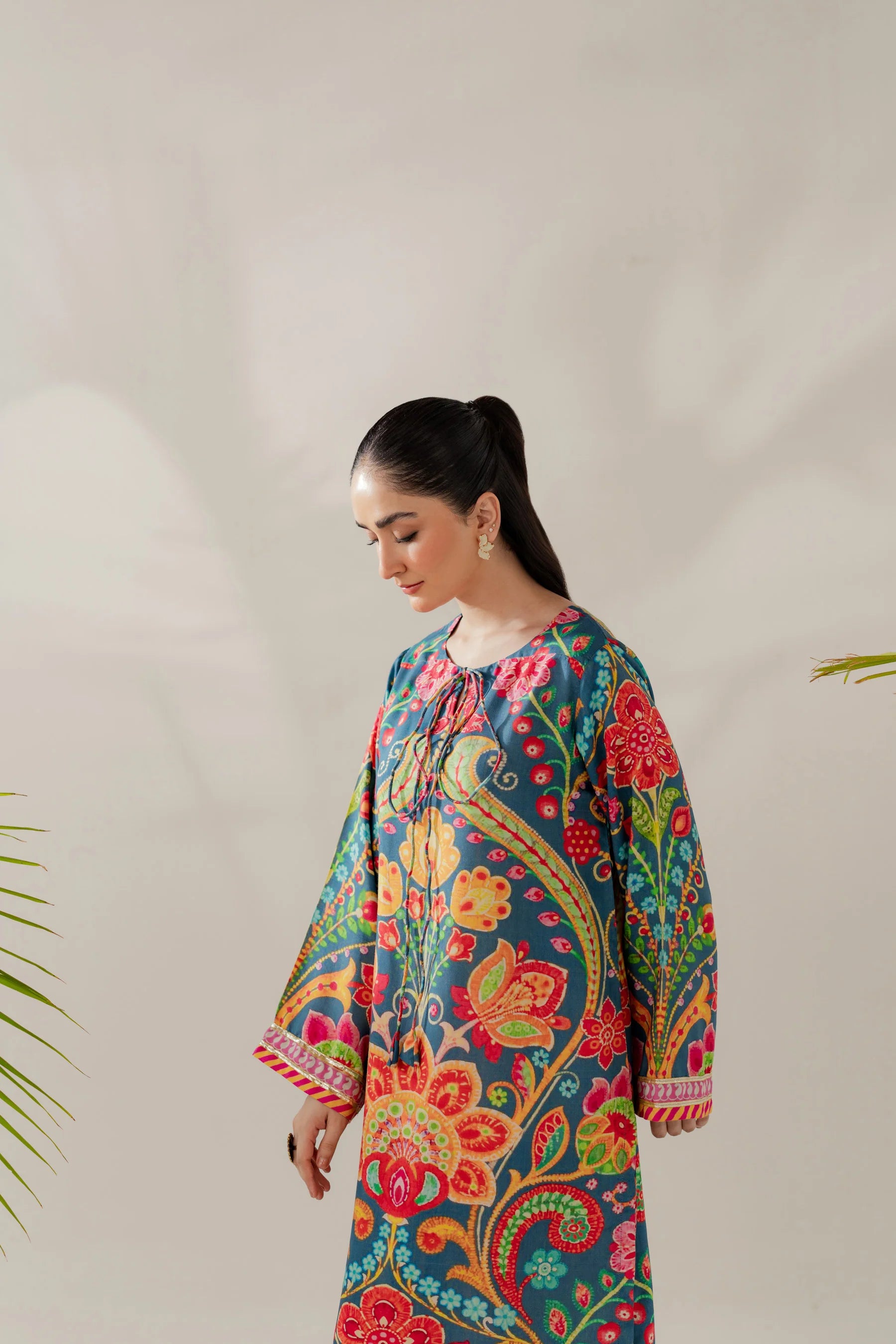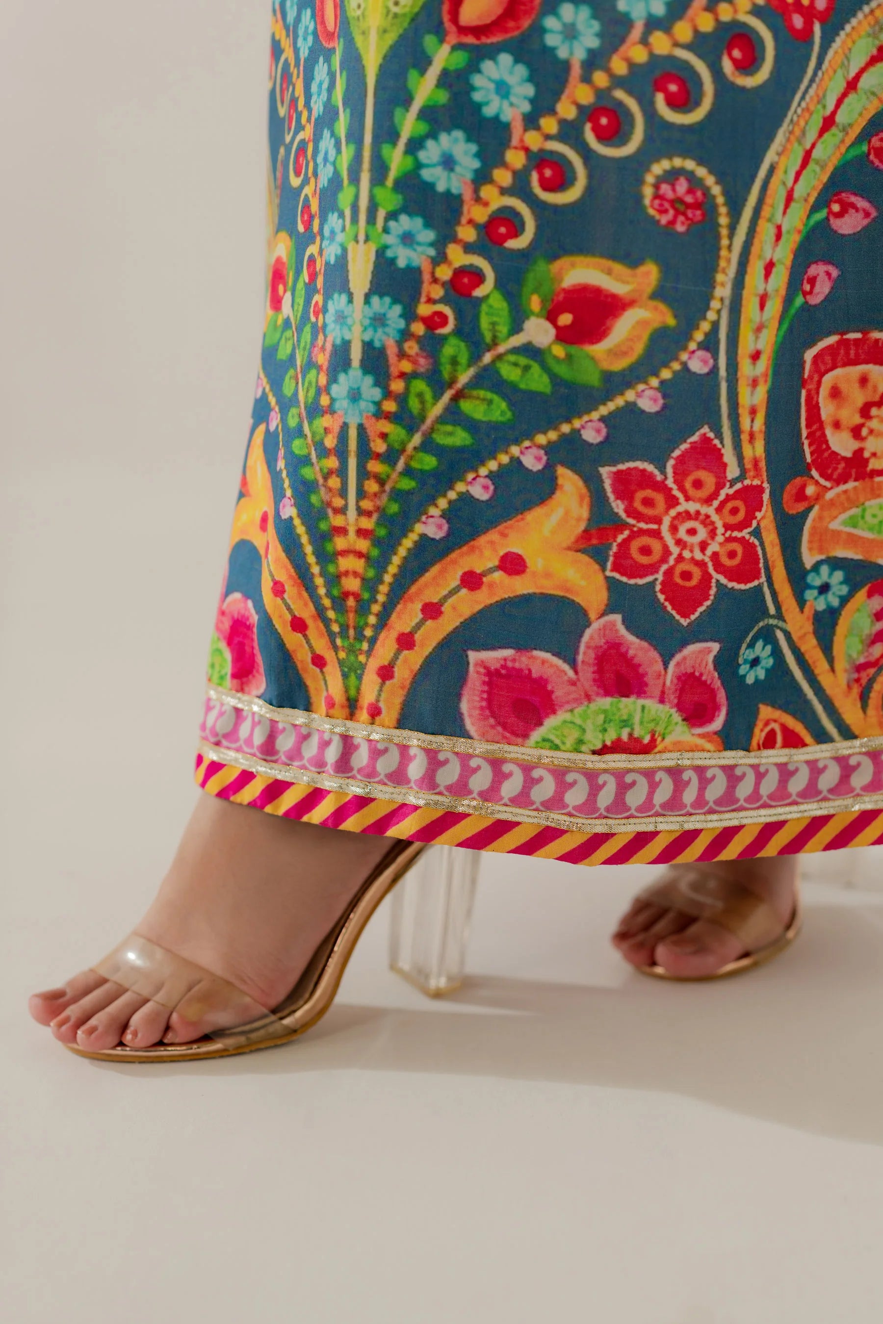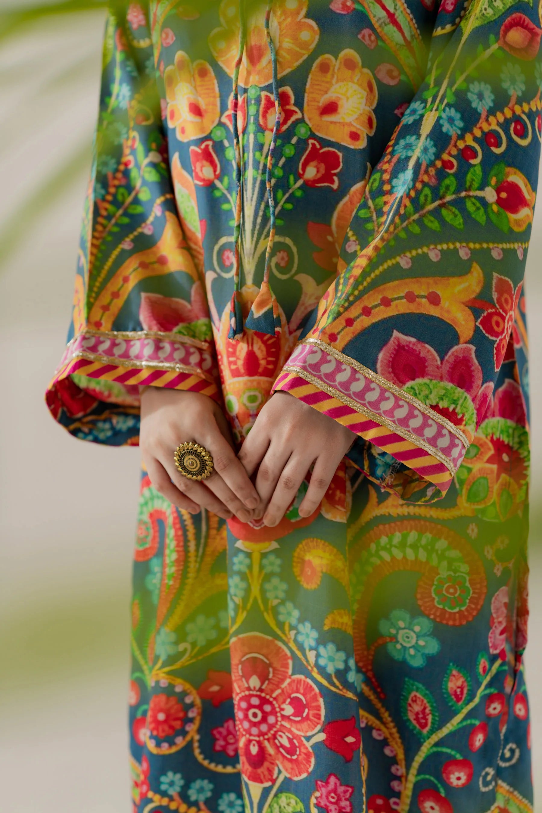 Shirt: Printed viscose with gota details (length 50 inches)