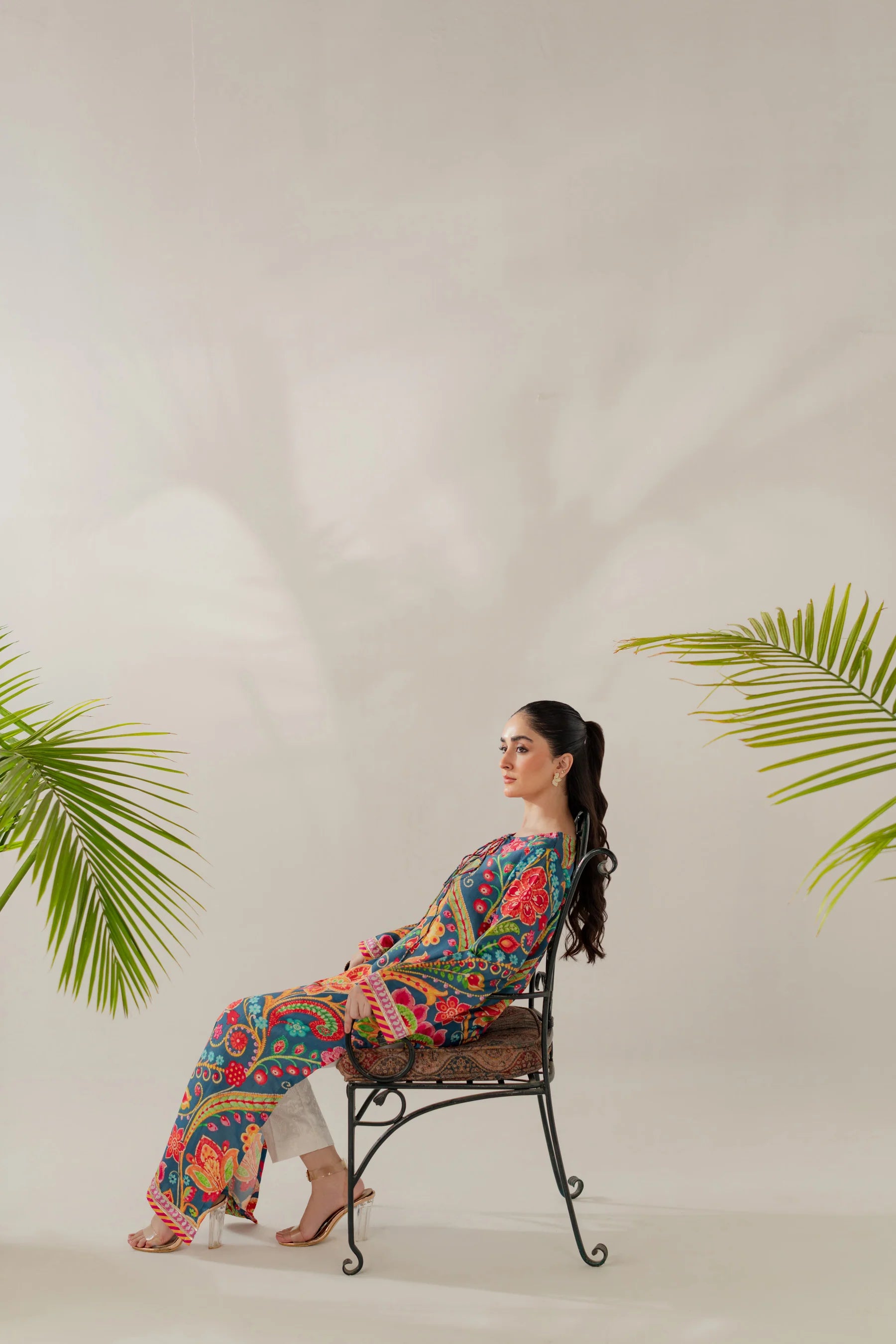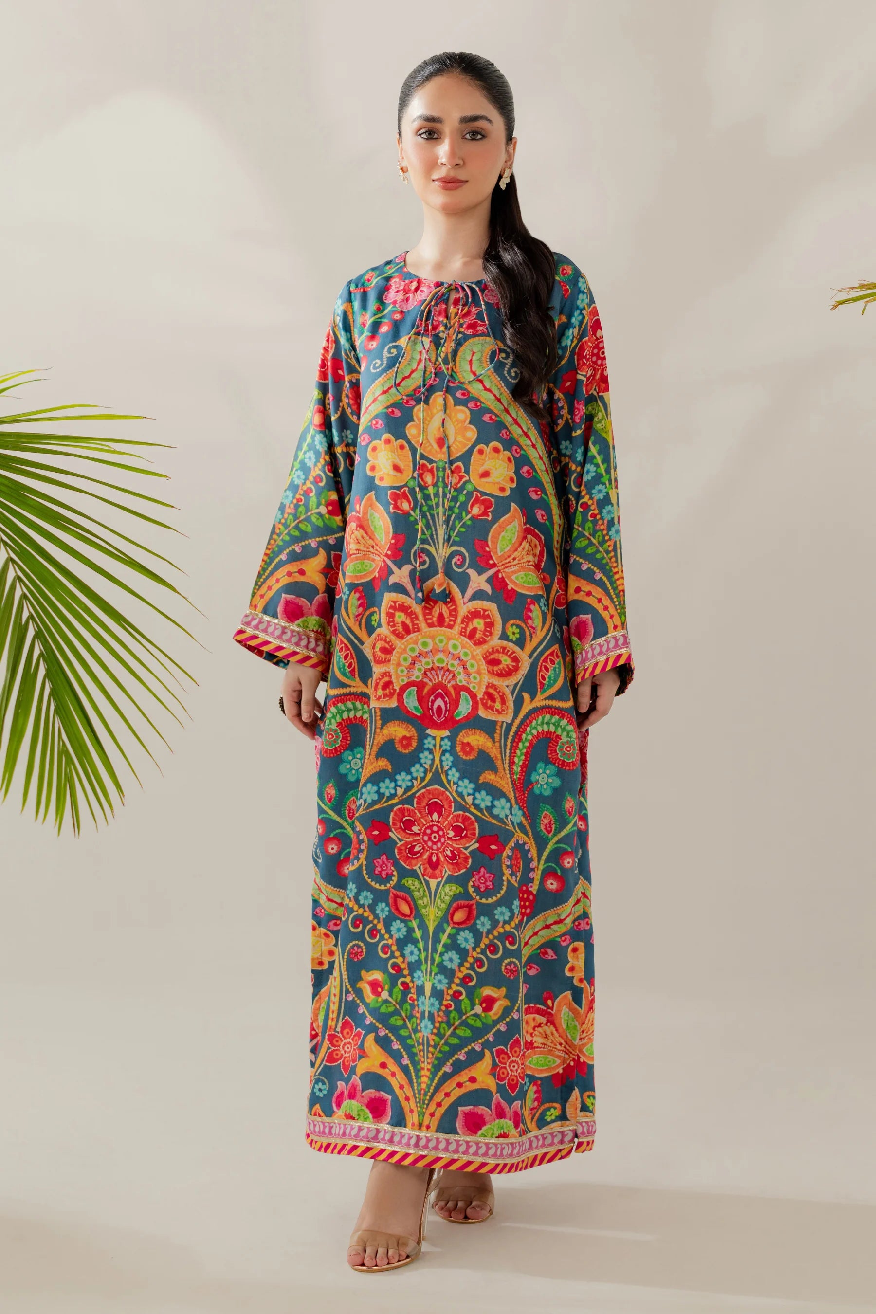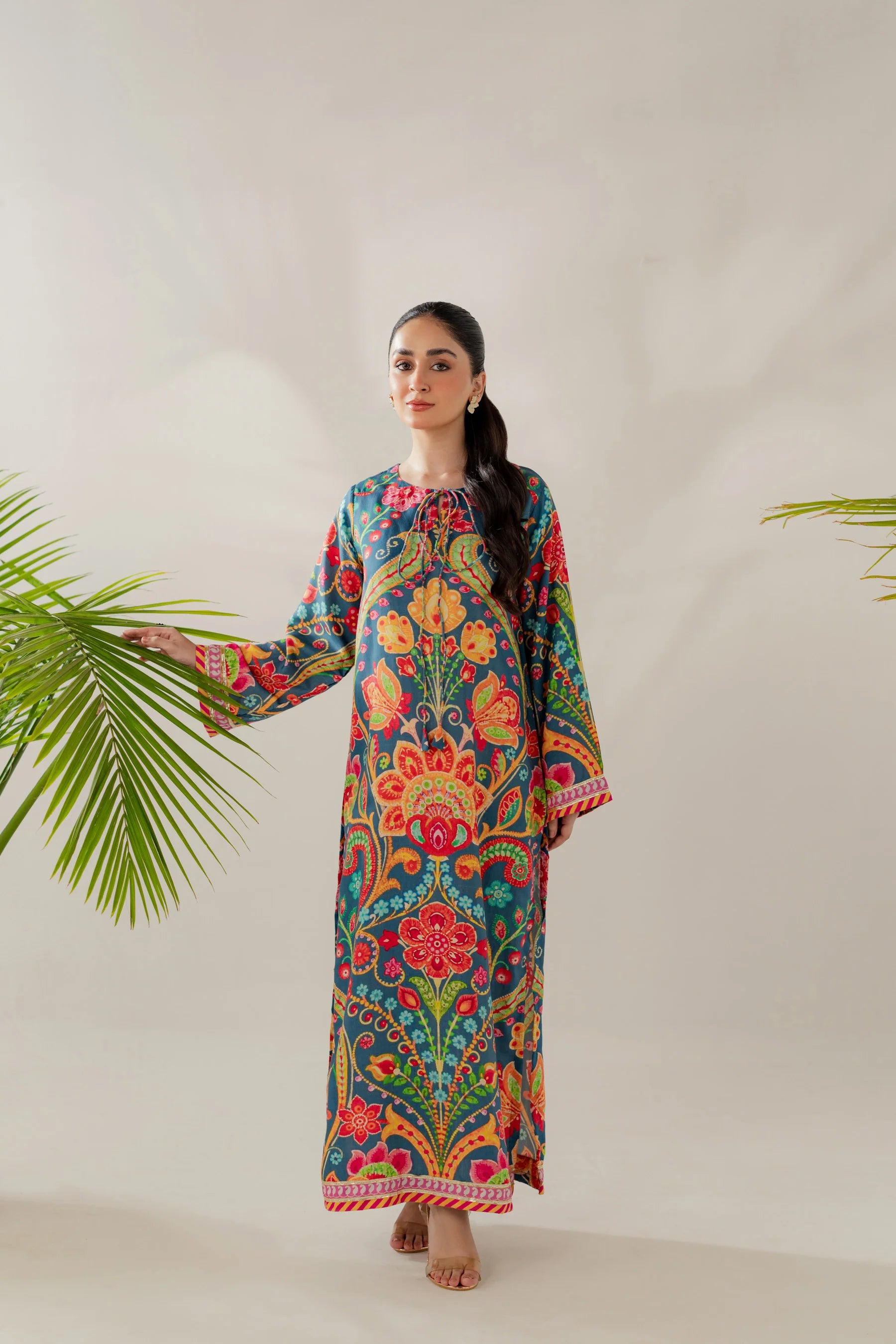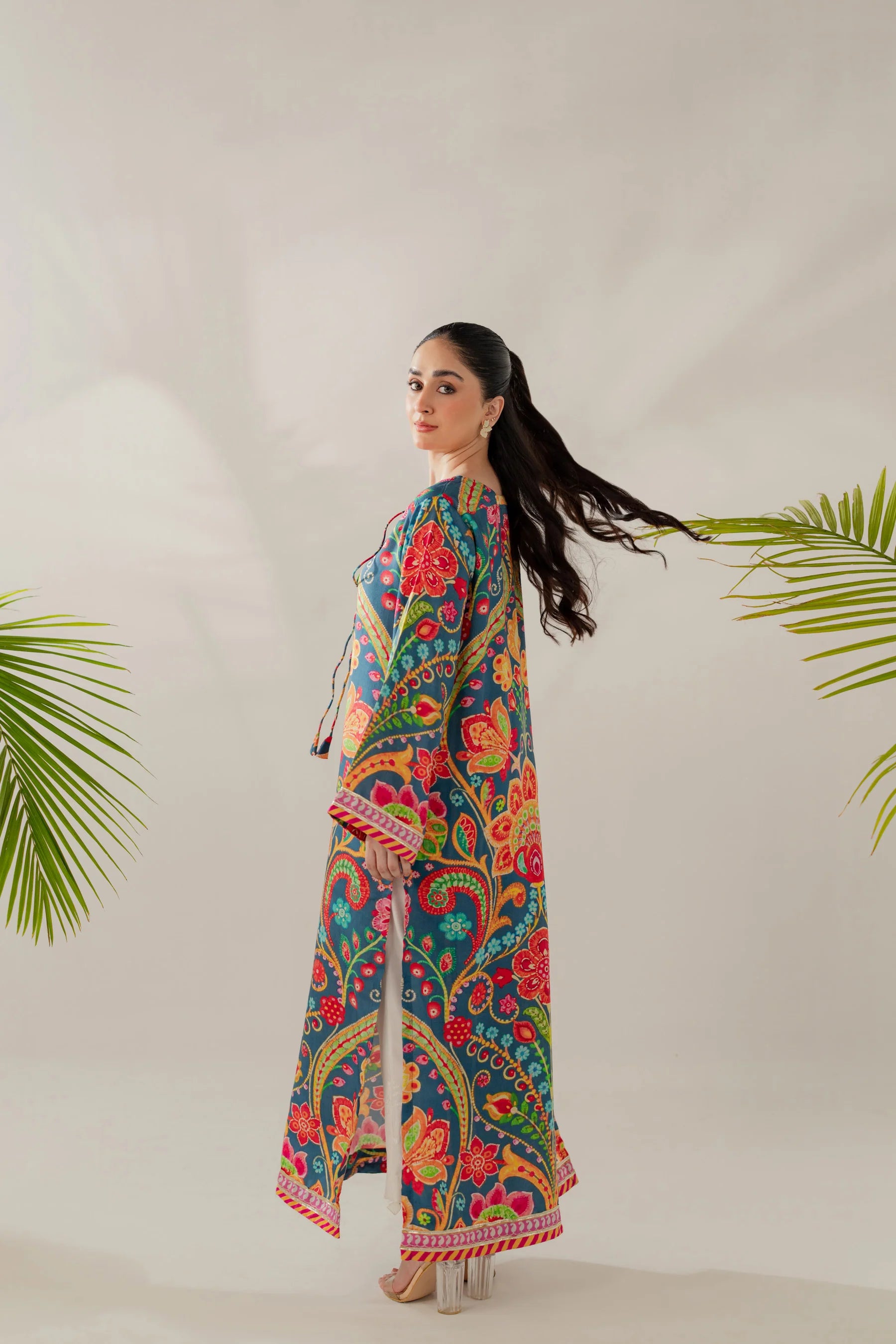 Shirt: Printed viscose with gota details (length 50 inches)
