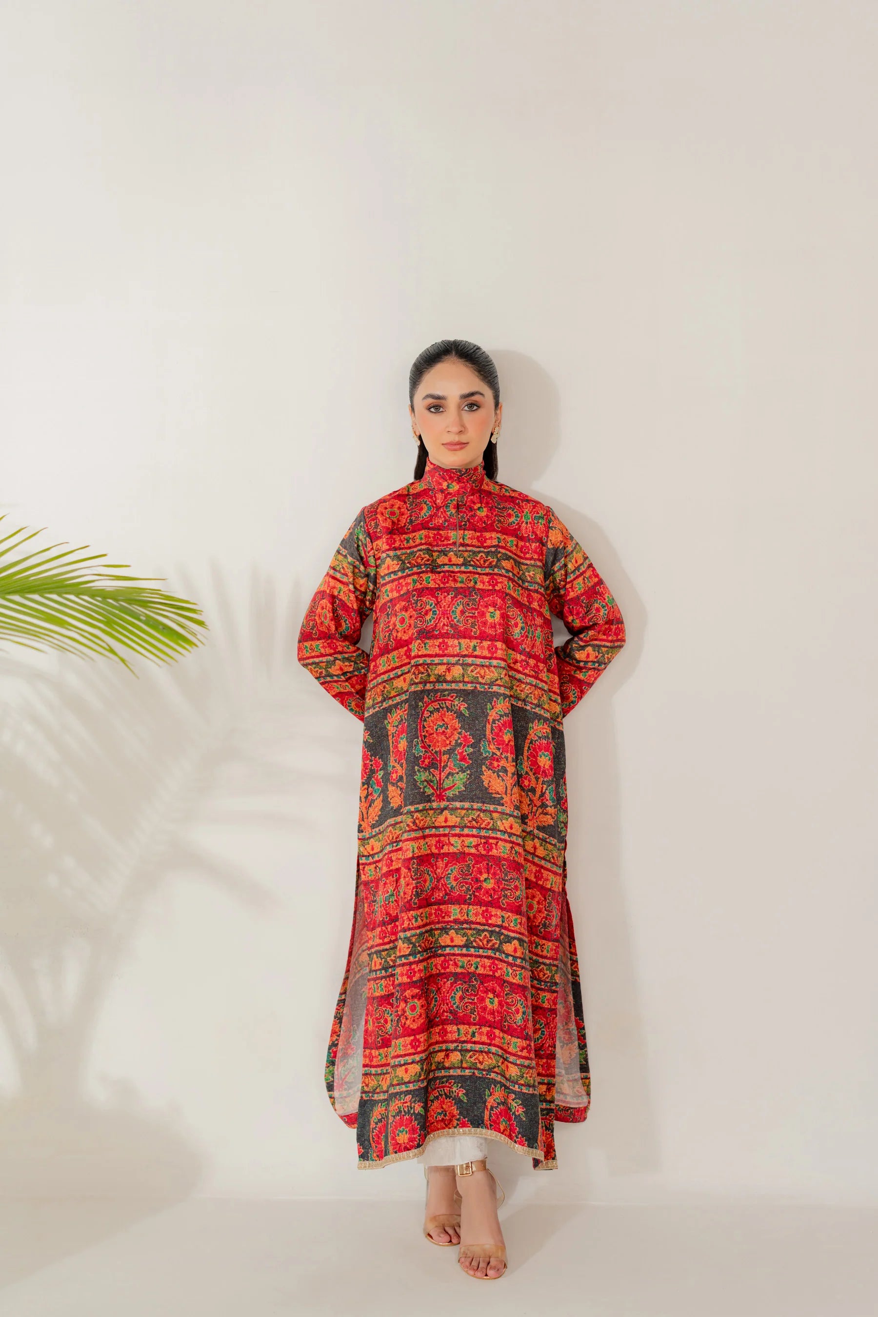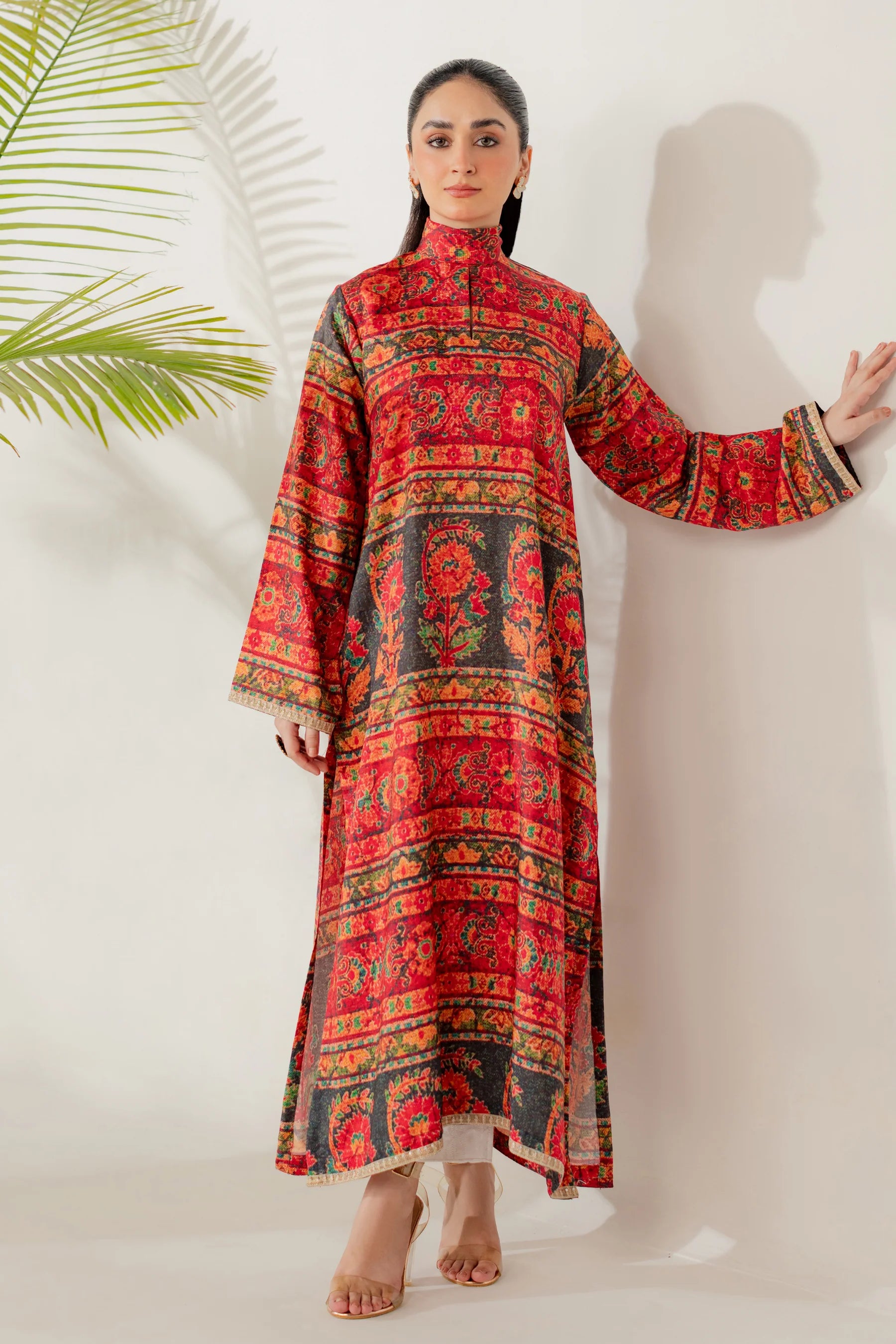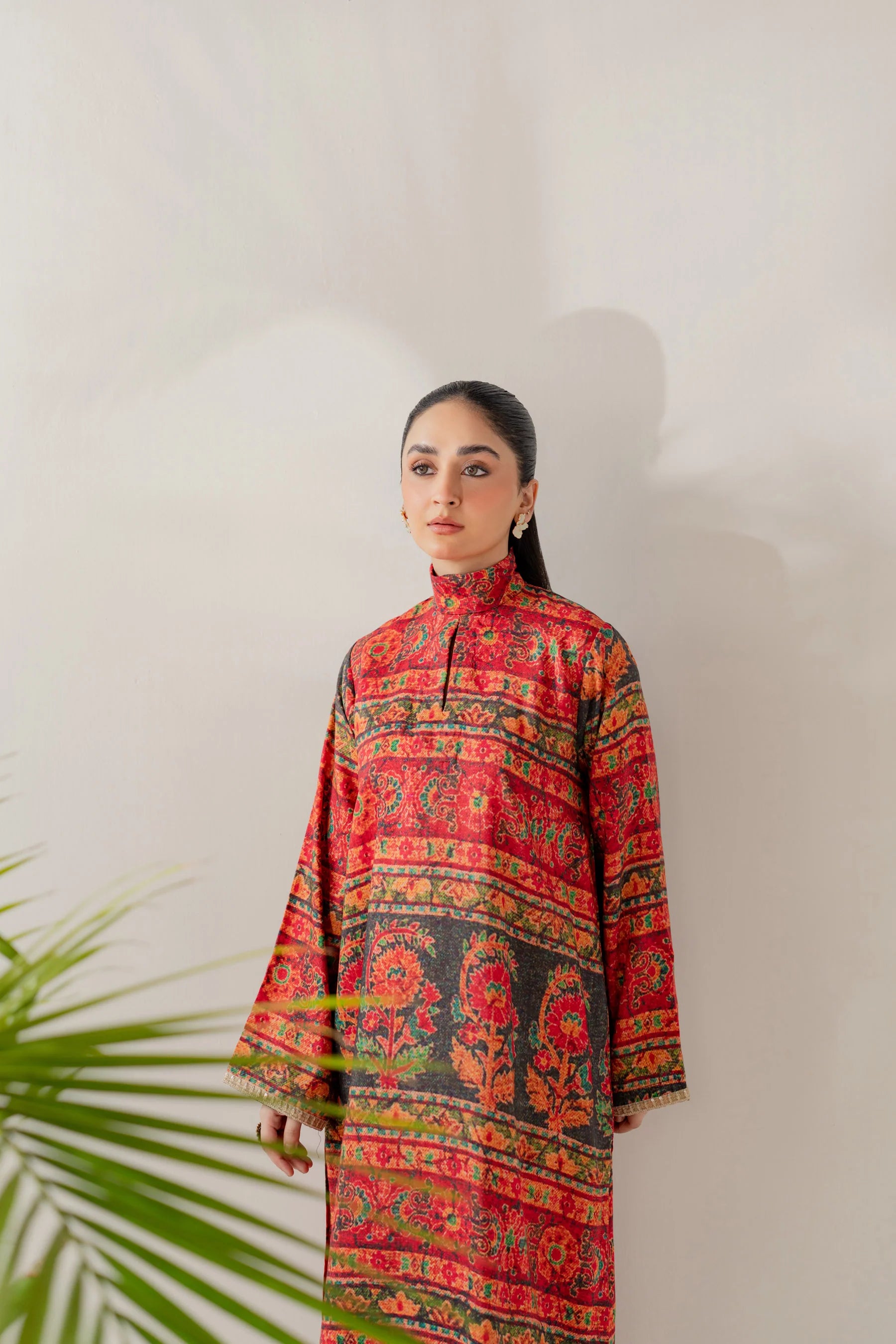 Shirt: Printed viscose with an embroidered border (length 50 inches)