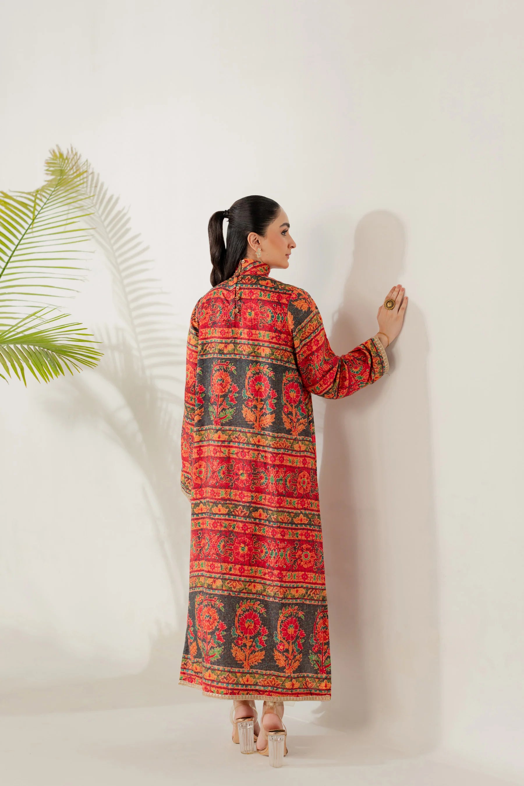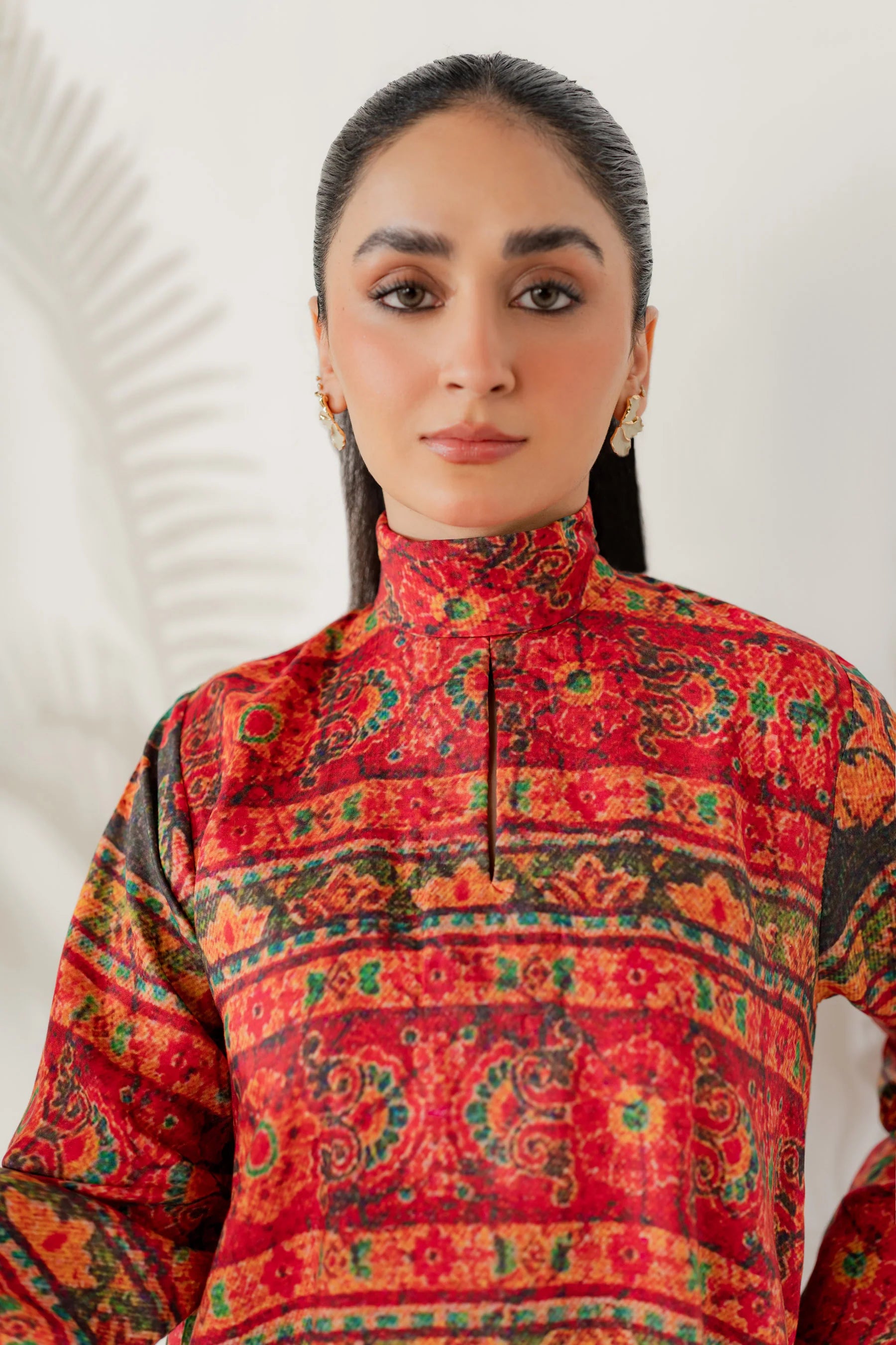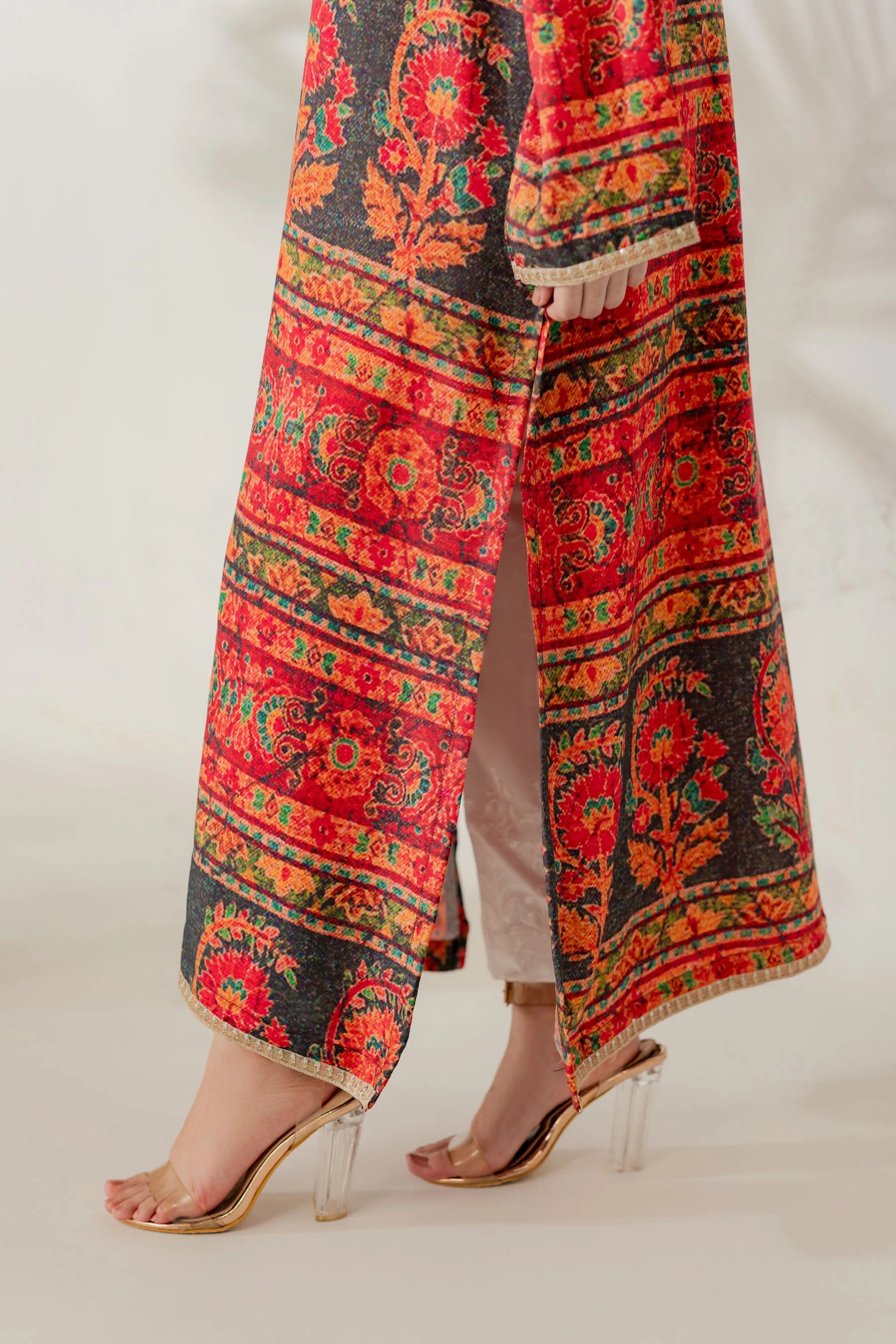 Shirt: Printed viscose with an embroidered border (length 50 inches)