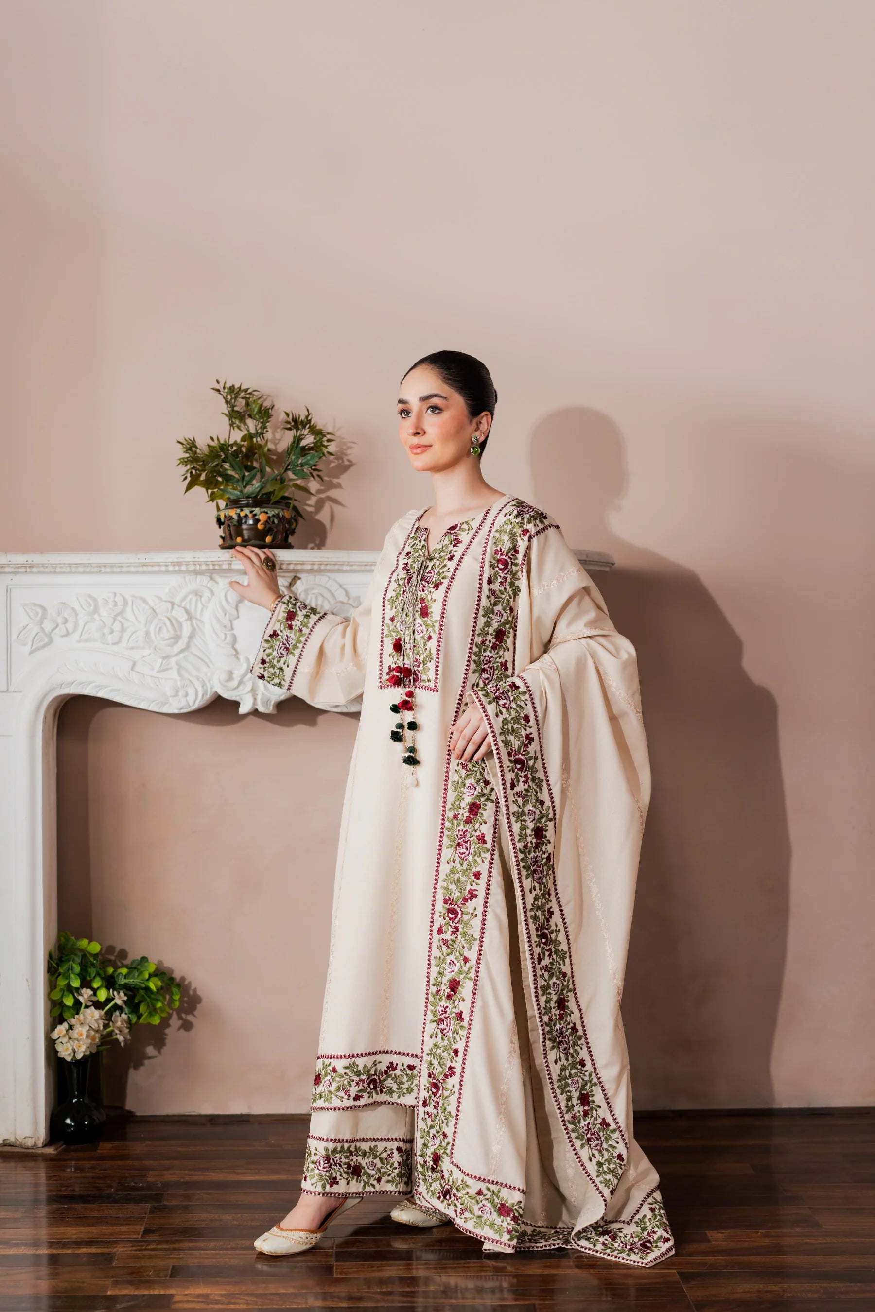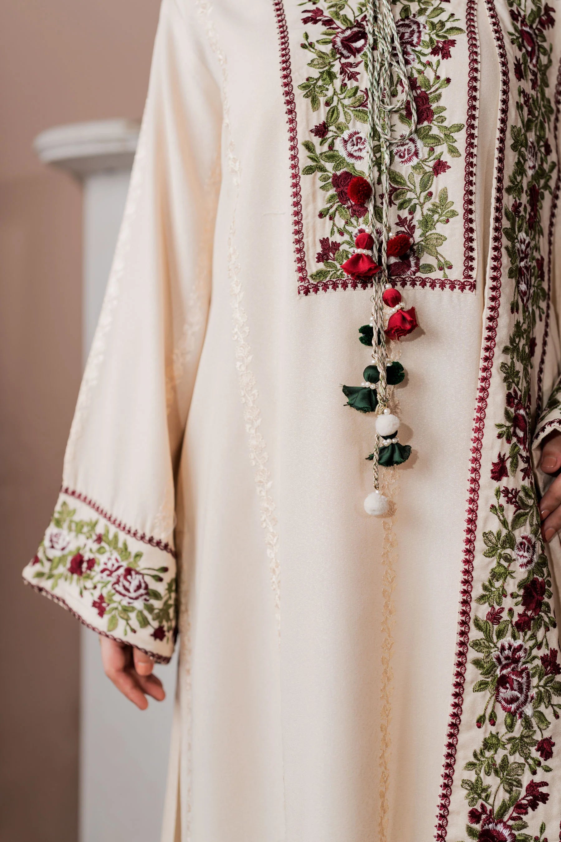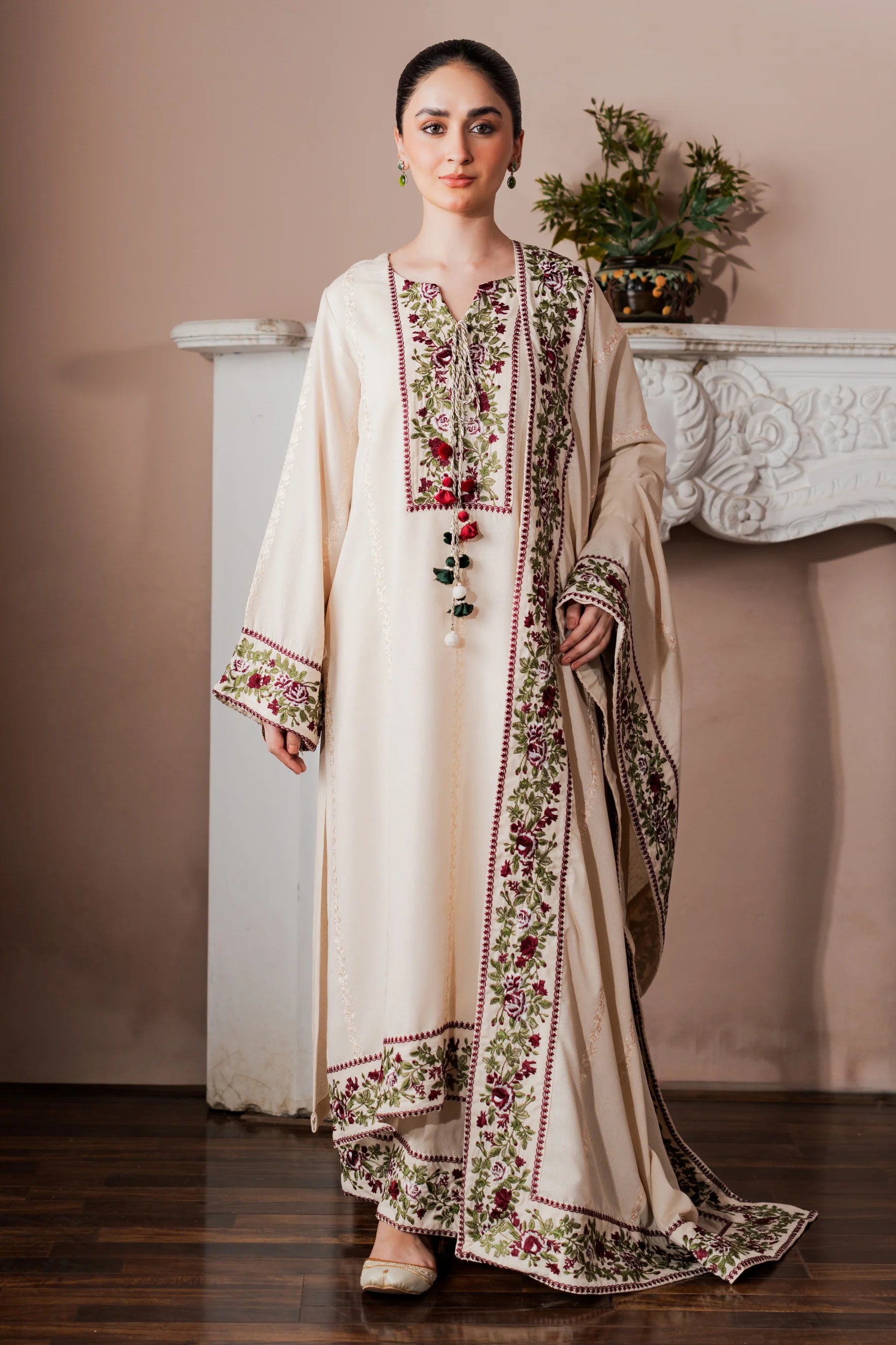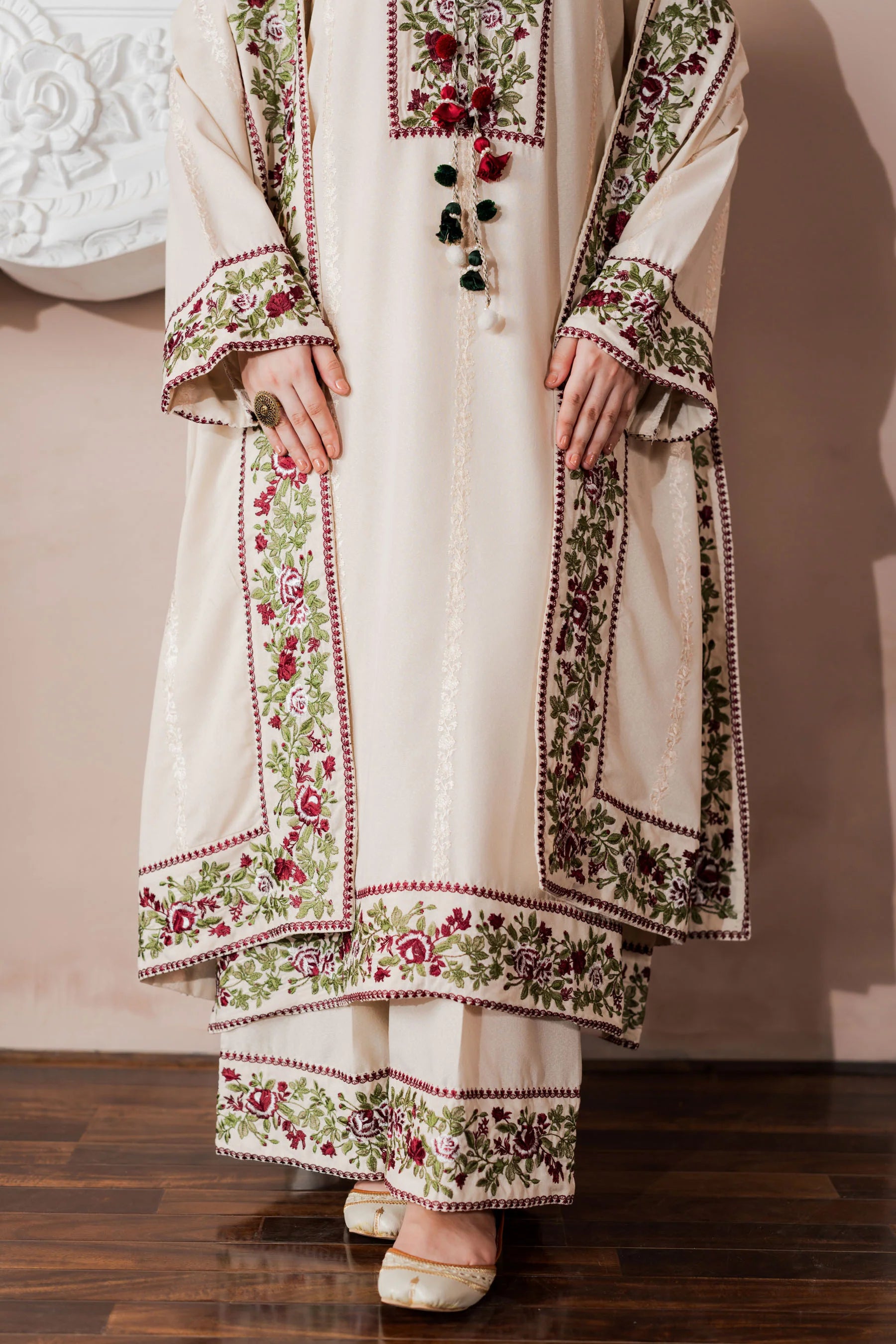 Shirt: Embroidered karandi.