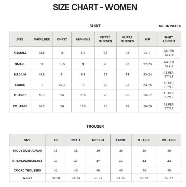* Always check the Brand size guide in image slideshow of each item as every ready to wear item has its own size guide to be followed.