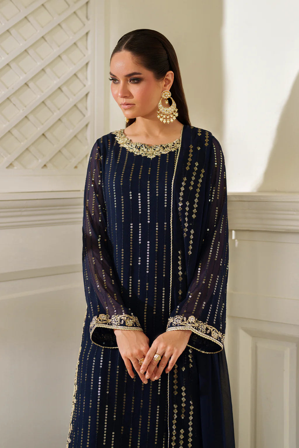 Estimated delivery times: 3-5 weeks for Unstitched & 6-8 weeks for Stitched suits (worldwide).