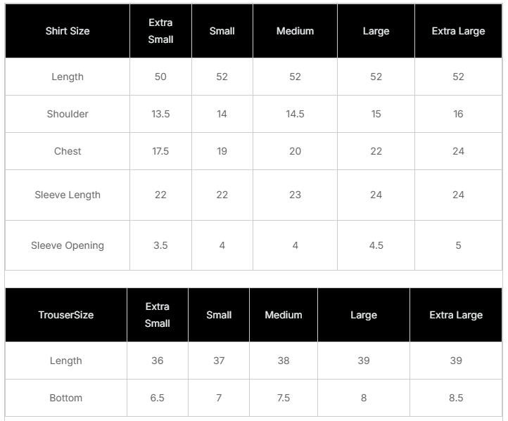 * Trousers are stitched according to the style match in the images.