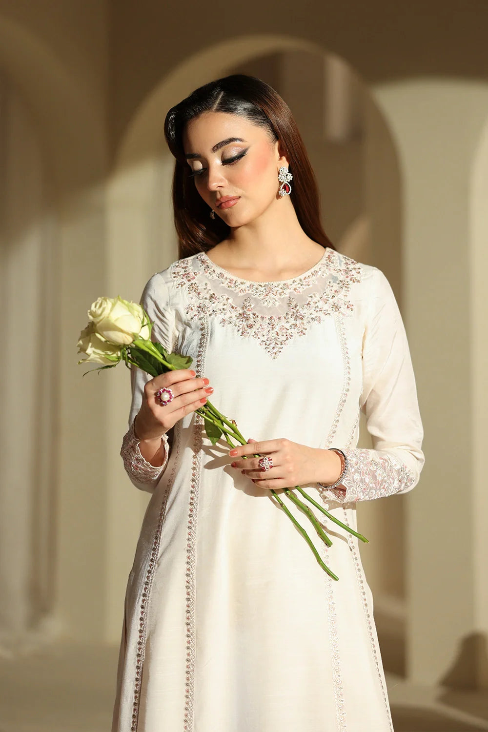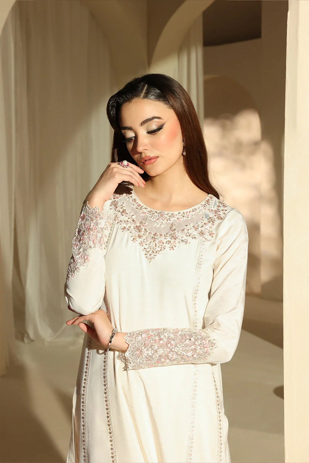 Carefully read sizing information before ordering to prevent post-purchase hassles and disappointment. Product colors may slightly differ due to light variations during photography or digital display discrepancies. Our hand-embroidered/embellished items are delicate, with a 5%-10% variation possibility. Efforts are made to minimize differences. Beading/sequences displacement is possible, not considered a fault, but wear these items with care due to their handcrafted nature. Claims for variations and beading/sequences displacement are not considered faults. Placing an order acknowledges the potential variation compared to images on the website.