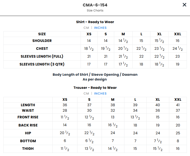 * Always check the Brand size guide in image slideshow of each item as every ready to wear item has its own size guide to be followed.