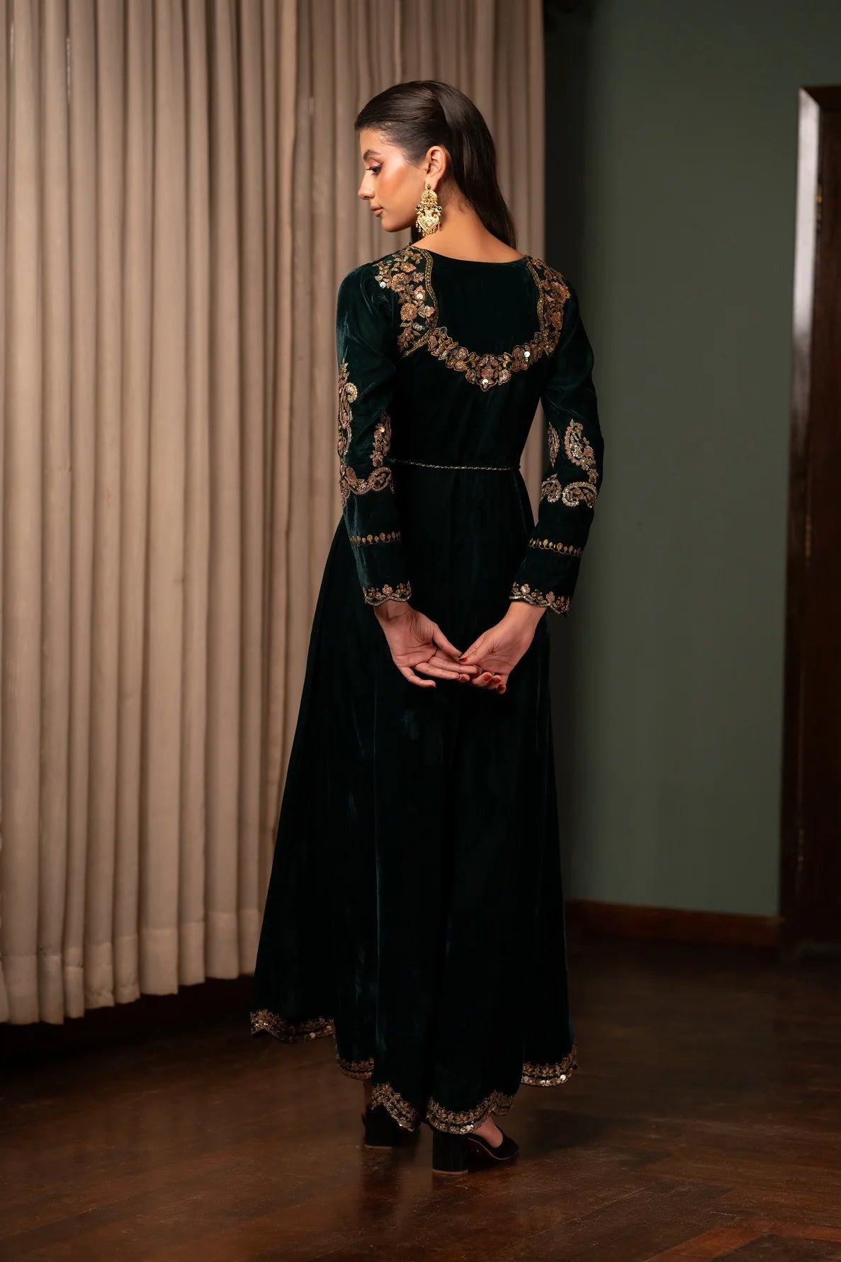 NF-6296 Bottle Green Velvet Stitched Shirt (Pre-Order)