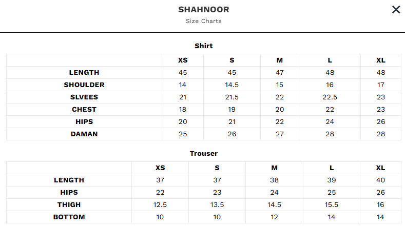 * Always check the Brand size guide in image slideshow of each item as every ready to wear item has its own size guide to be followed.
